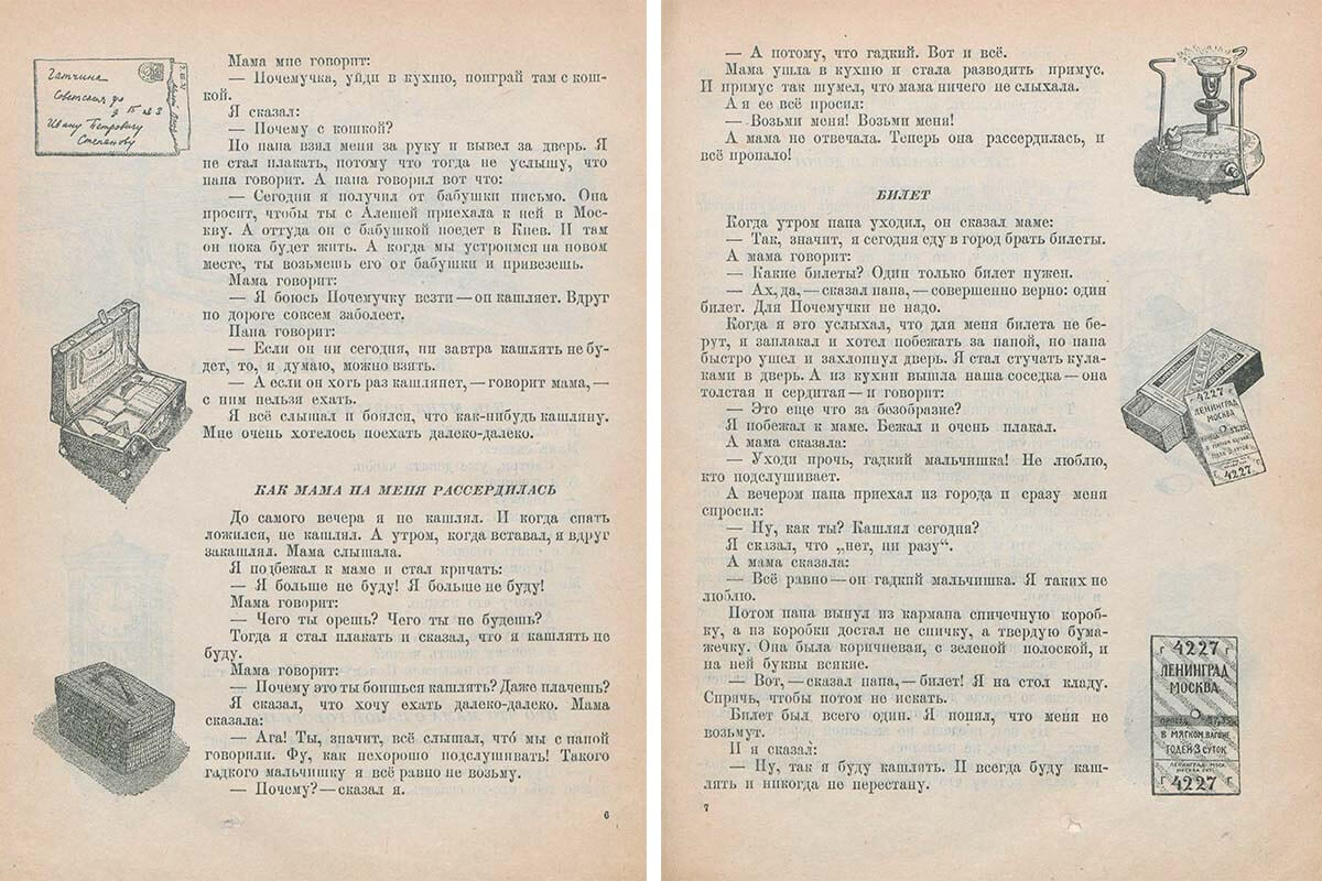 Есть в Ленинке и две книги Александра Введенского, о которых по известным причинам много не говорили, — «Путешествие в Крым» (1929) и «О девочке Маше, о собаке Петушке и о кошке Ниточке» (1937).