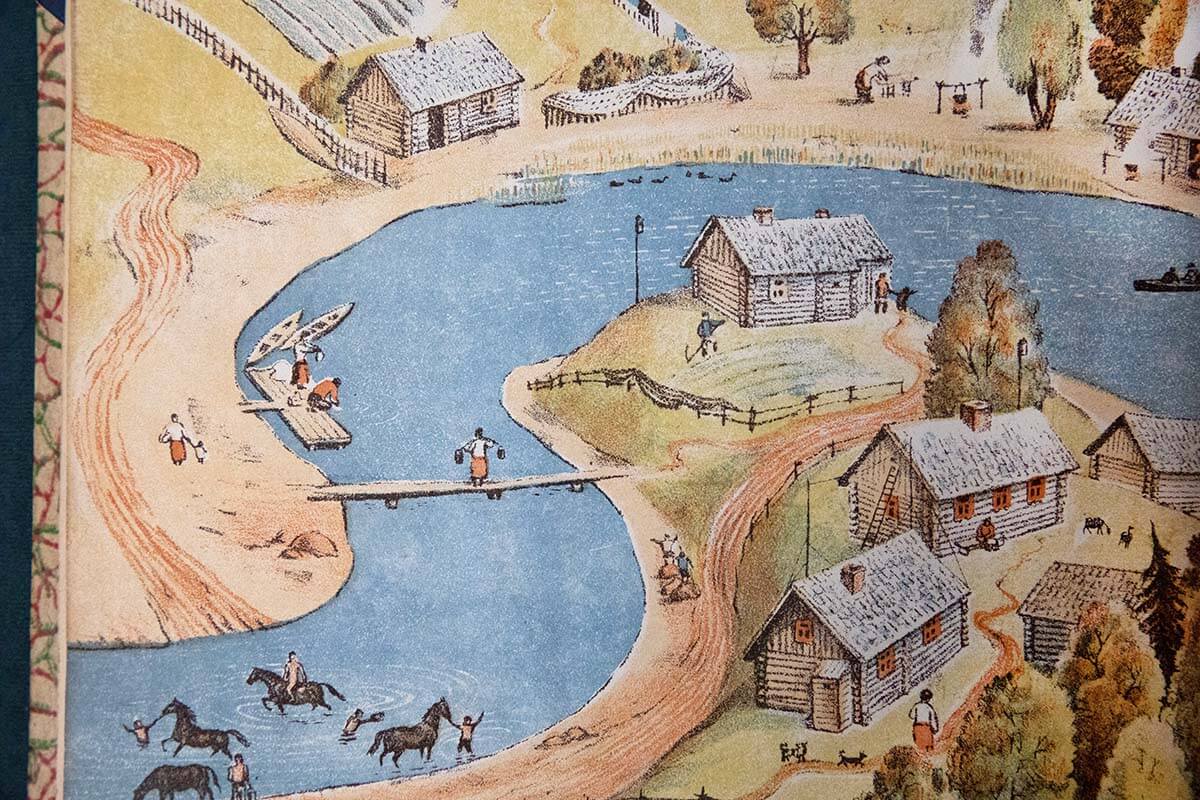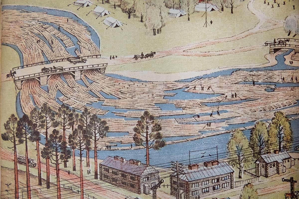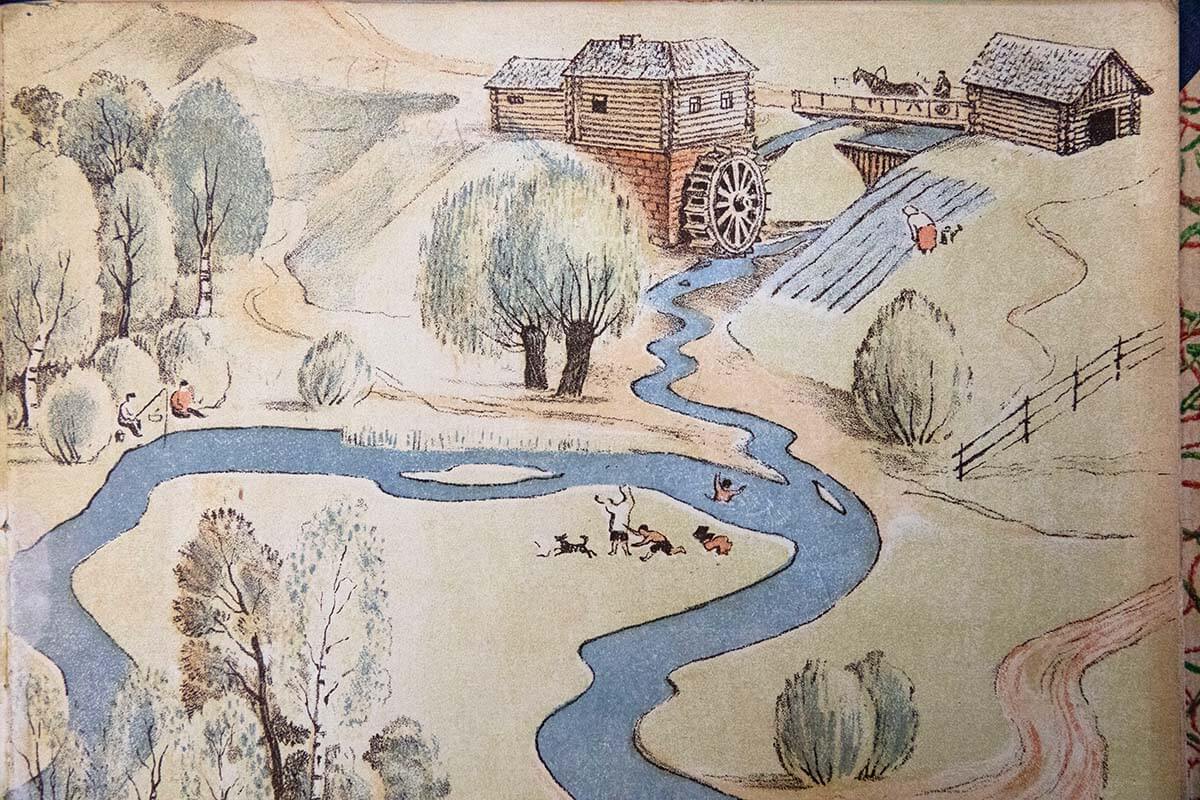 Она была издана в 1930 году , ещё до ссылки, и очень полюбилась и детям, и взрослым. А в 1935 году Елена Васильевна сделала новую версию «Реки» : идея была та же, а воплощение — иное. Во втором издании мы видим уже промышленные города, большие пароходы, заводы, все изменения жизни.