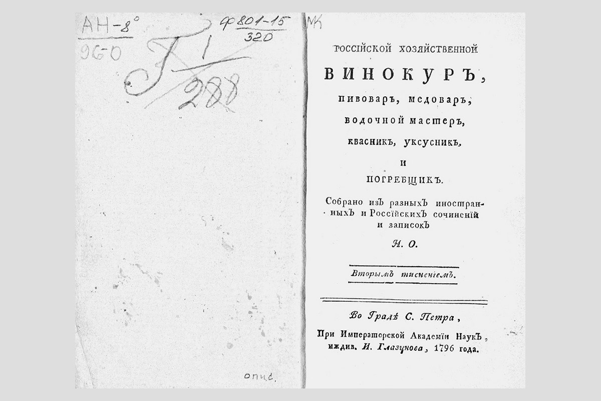 Первая страница книги «Российской хозяйственной винокур, пивовар, медовар, водочной мастер, квасник, уксусник, и погребщик»