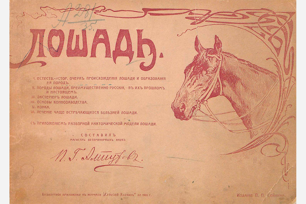 Книга магистра ветеринарных наук Павла Георгиевича Алтухова «Лошадь» (1904) рассказывает о том, как выбирать лошадь, как правильно подковать её и как лечить. В приложении к книге — анатомический атлас, где можно рассмотреть мышечное, скелетное строение лошади, её кровеносную систему.