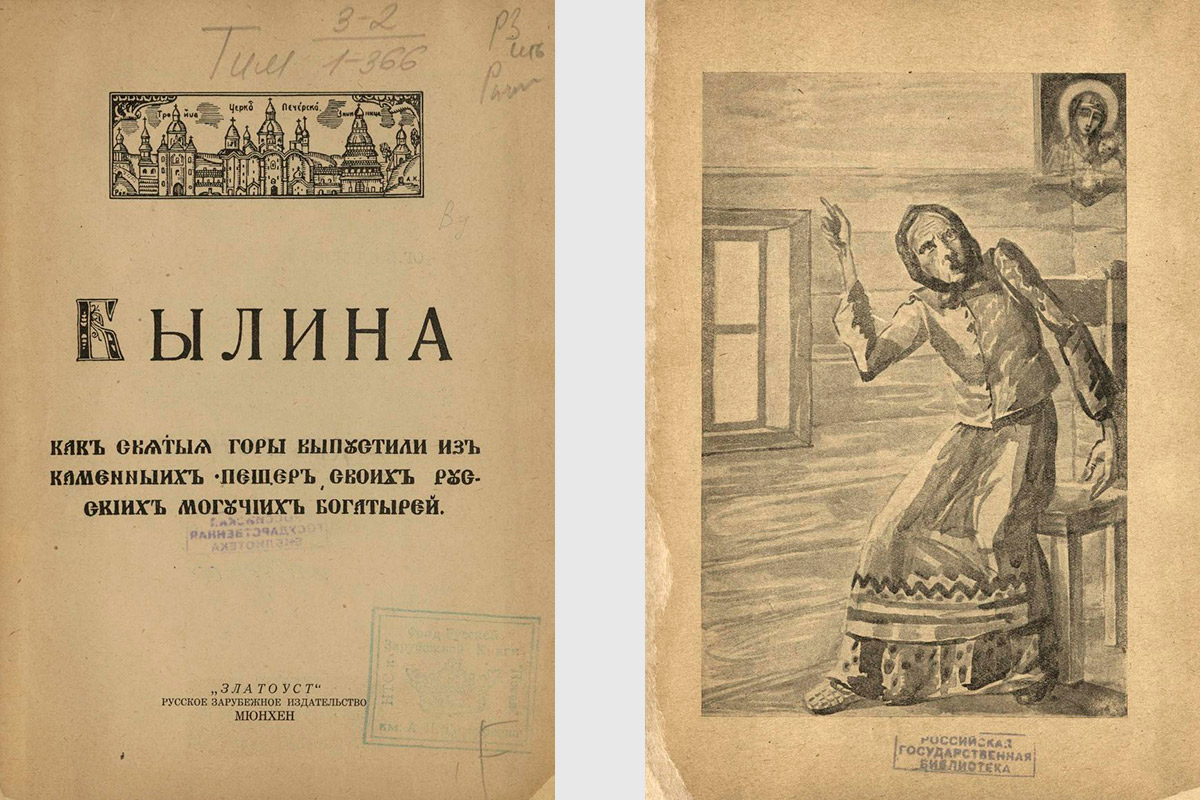 Советский эмигрант Н. Мишаев напечатал в Русском зарубежном издательстве «Златоуст» в Мюнхене книгу с расшифровкой былины «Как святые горы выпустили из каменных пещер своих русских могучих богатырей». Эту былину он, по легенде, услышал в 1925 году от «бабки П.» в одной из северных советских деревень.