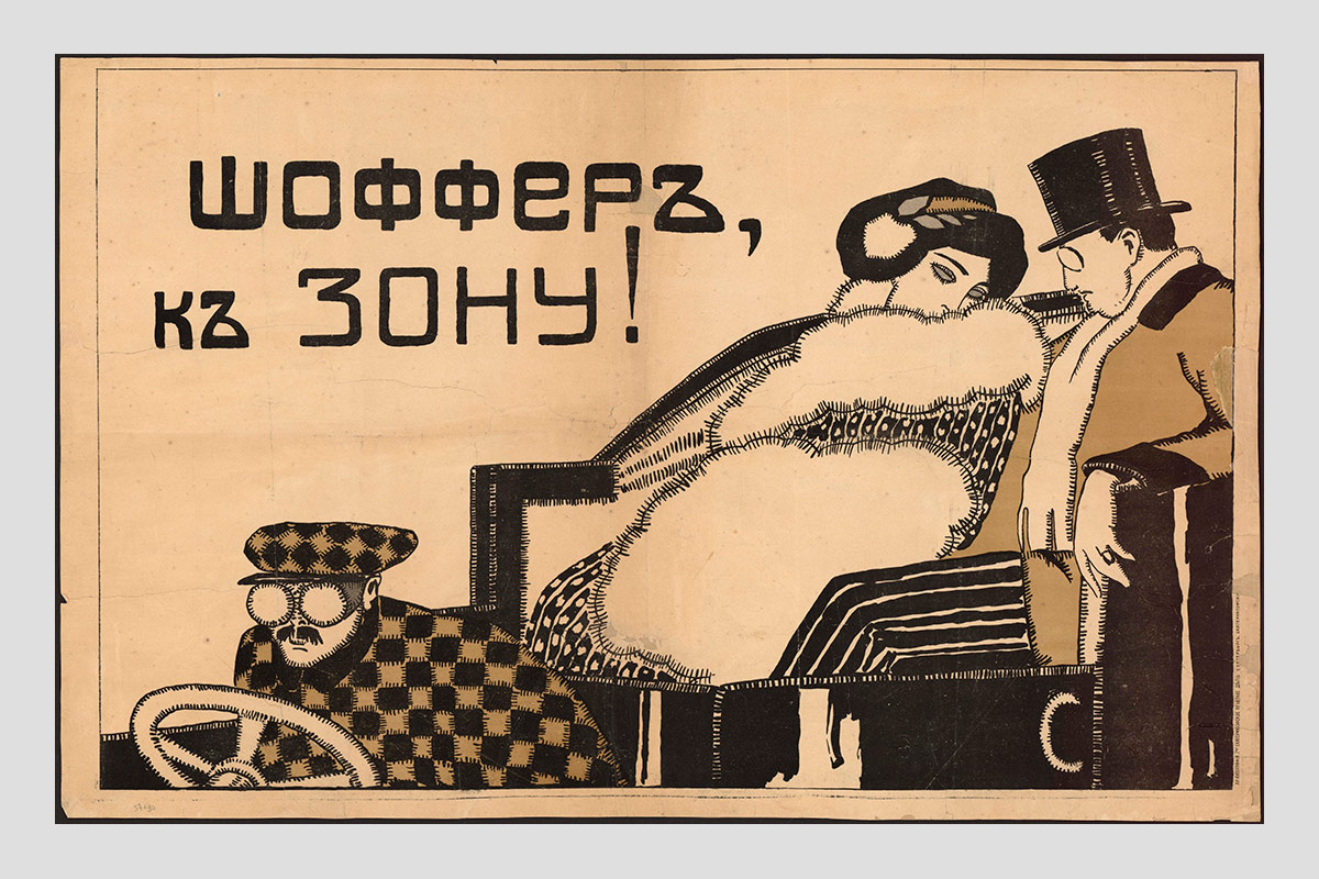 Некоторые плакаты в электронной коллекции Ленинки не имеют полных выходных данных, и порой стоит больших трудов воссоздать смысл происходящего на плакате. Плакат «Шоффер, к Зону!» — именно такой, загадочный. На нём не указаны ни год создания, ни художник. Известно лишь, что плакат был напечатан в начале ХХ века в санкт-петербургской типографии.