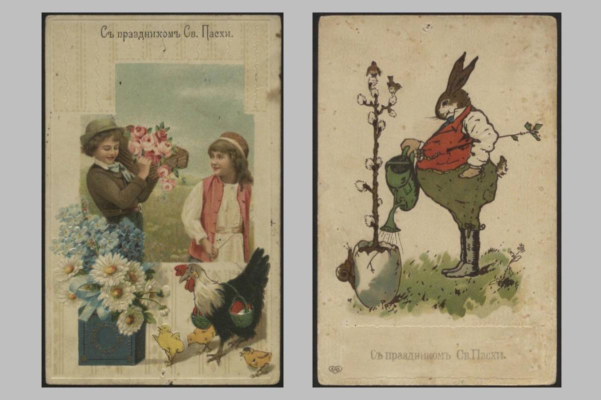 Работа по оцифровке старинных пасхальных открыток велась в Ленинке в течение нескольких месяцев. Всего в открытый доступ выложены несколько сотен открыток начала ХХ века. Чтобы упростить читателям поиск открыток, мы создали сервис . Здесь открытки отфильтрованы по ключевым словам, а кликнув на картинку, можно попасть на её страницу в электронной библиотеке.