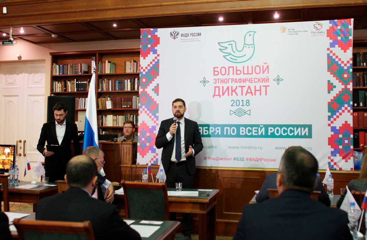 «Этнографический диктант — это не столько проверка знаний, сколько акция по привлечению внимания к колоссальному культурному разнообразию народов России, — сказал, приветствуя участников акции в Доме Пашкова, руководитель Федерального агентства по делам национальностей Игорь Баринов. — Мы надеемся, что он станет еще и прививкой от национальных предрассудков и стереотипов».