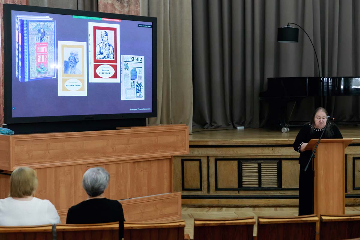 Кириллическое книгопечатание у восточных славян стало отдельной темой для обсуждения в рамках соответствующего заседания. Изучению изданий московской печати были посвящены выступления старшего научного сотрудника Государственного исторического музея Елены Серебряковой, библиотекаря НИО редких книг РГБ Максима Борисова, главного библиографа Самарской областной универсальной научной библиотеки Ларисы Сташенковой, старшего научного сотрудника ЦНБ имени Якуба Коласа НАН Беларуси Елены Титовец и других.