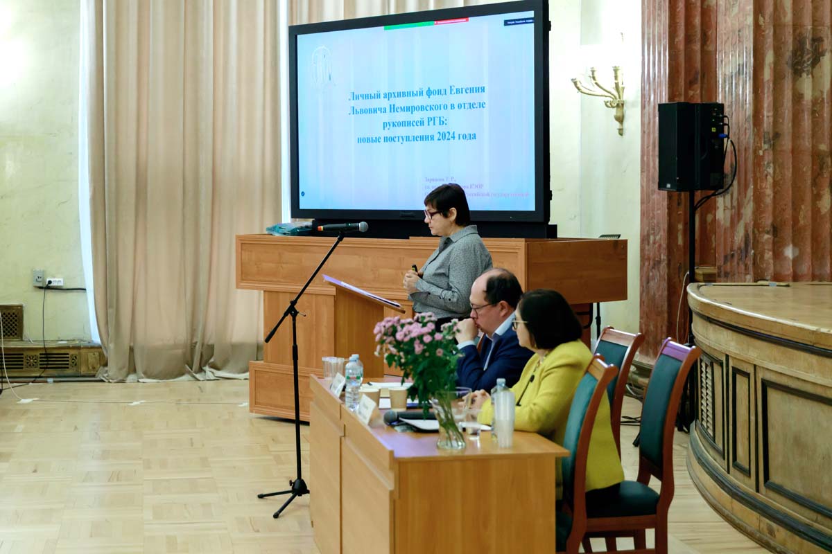 В докладах главного архивиста отдела рукописей РГБ Татьяны Зариповой, заведующей НИО редких книг РГБ (Музея книги) Джамили Рамазановой и заведующей сектором НИО редких книг РГБ (Музея книги) Ирины Карповой описываются и анализируются документы и книги из собрания Евгения Немировского, переданные в отдел рукописей и в отдел редких книг РГБ (Музей книги).
