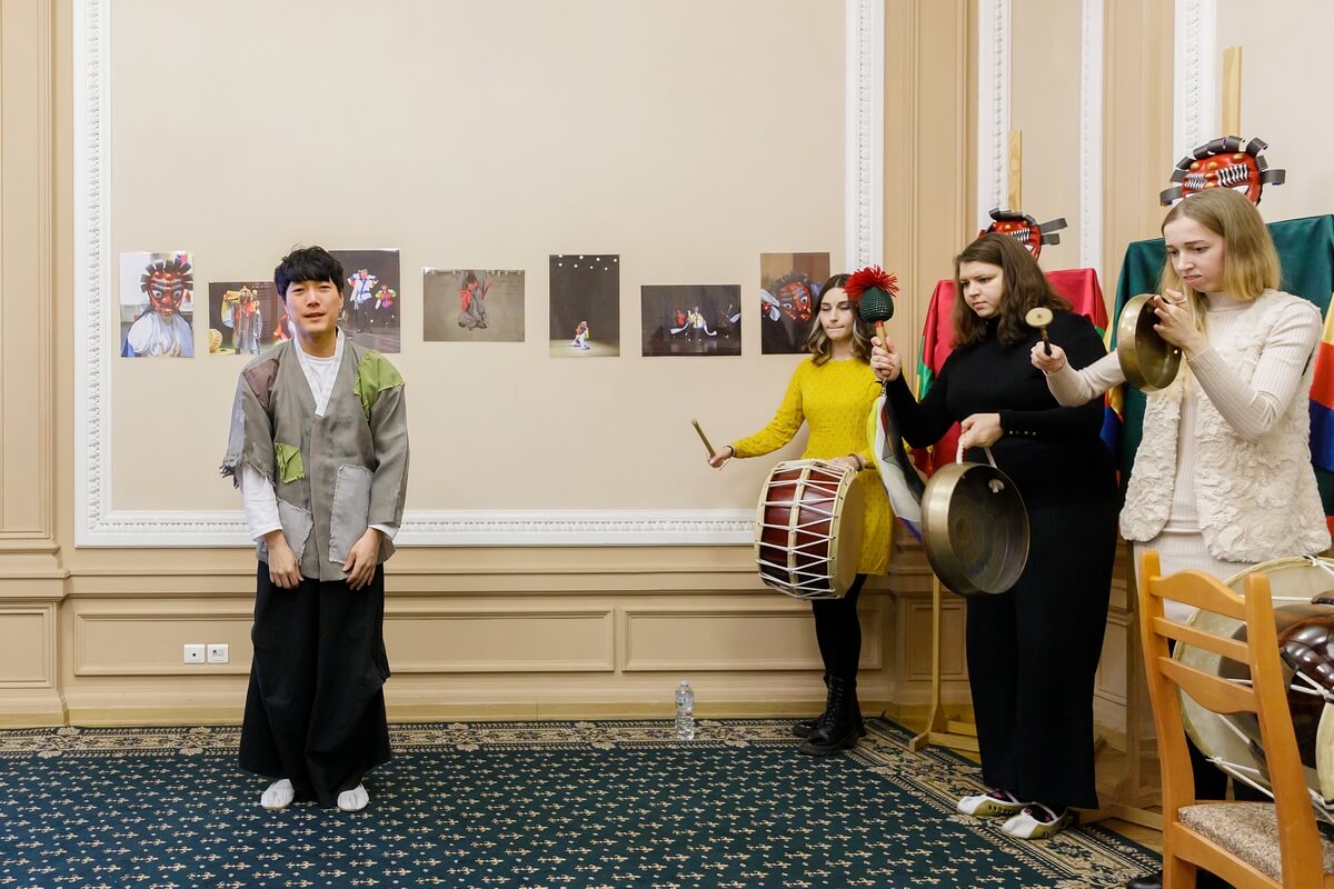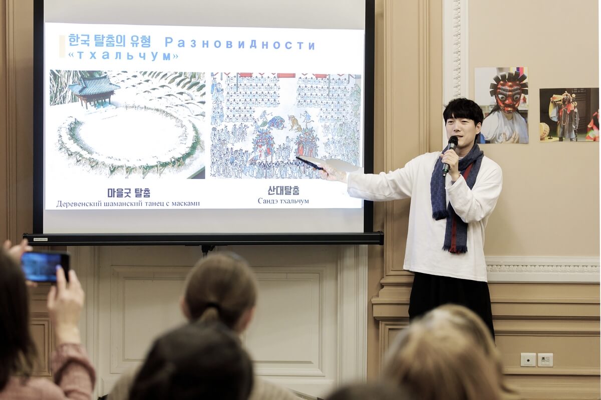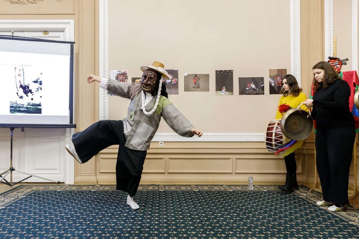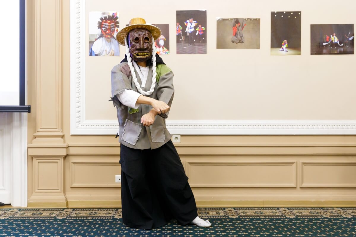 Лектор познакомил гостей с одним из видов танцев в масках — «Букчхон саджанореум», традиции которого в Корее передаются до настоящего времени.