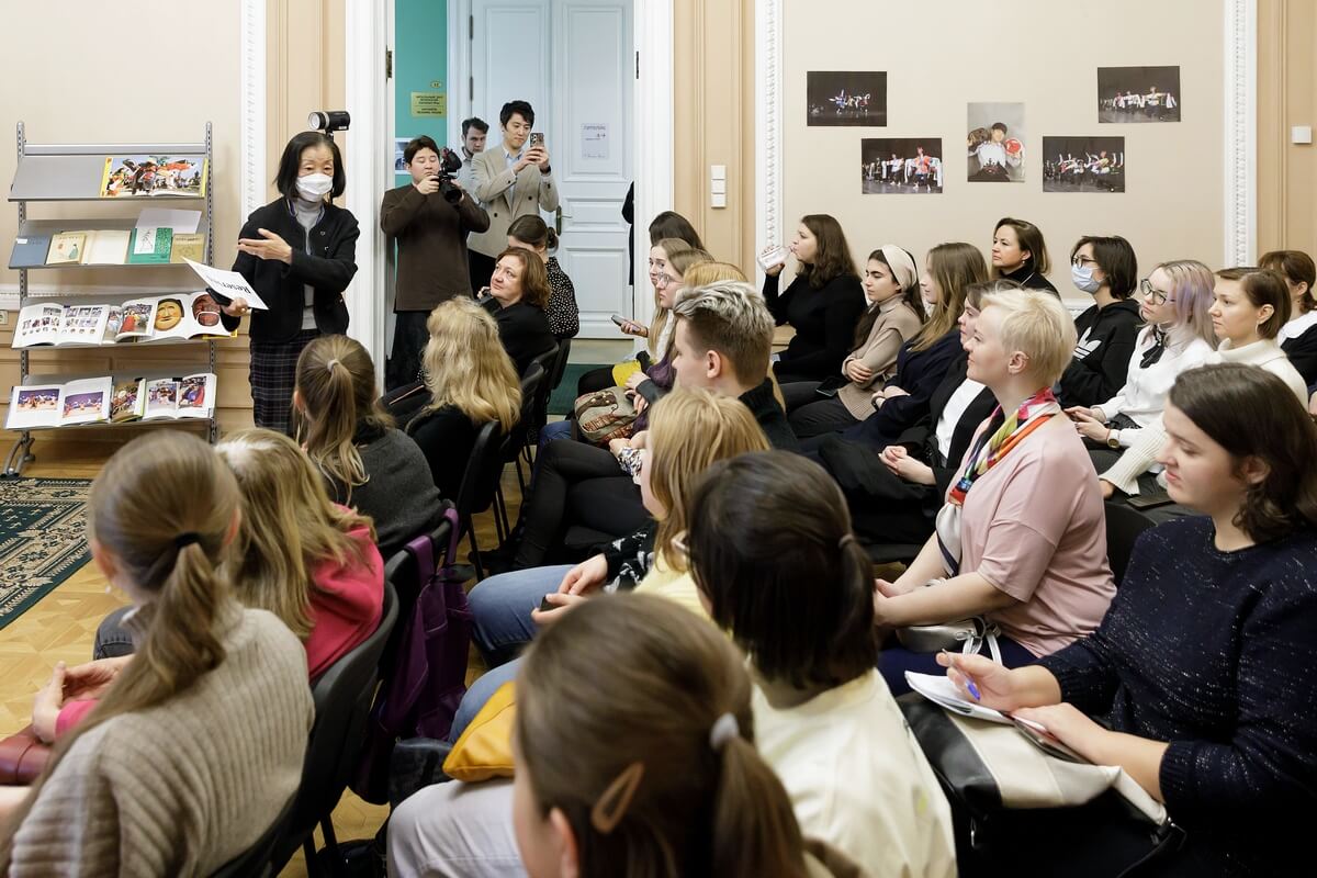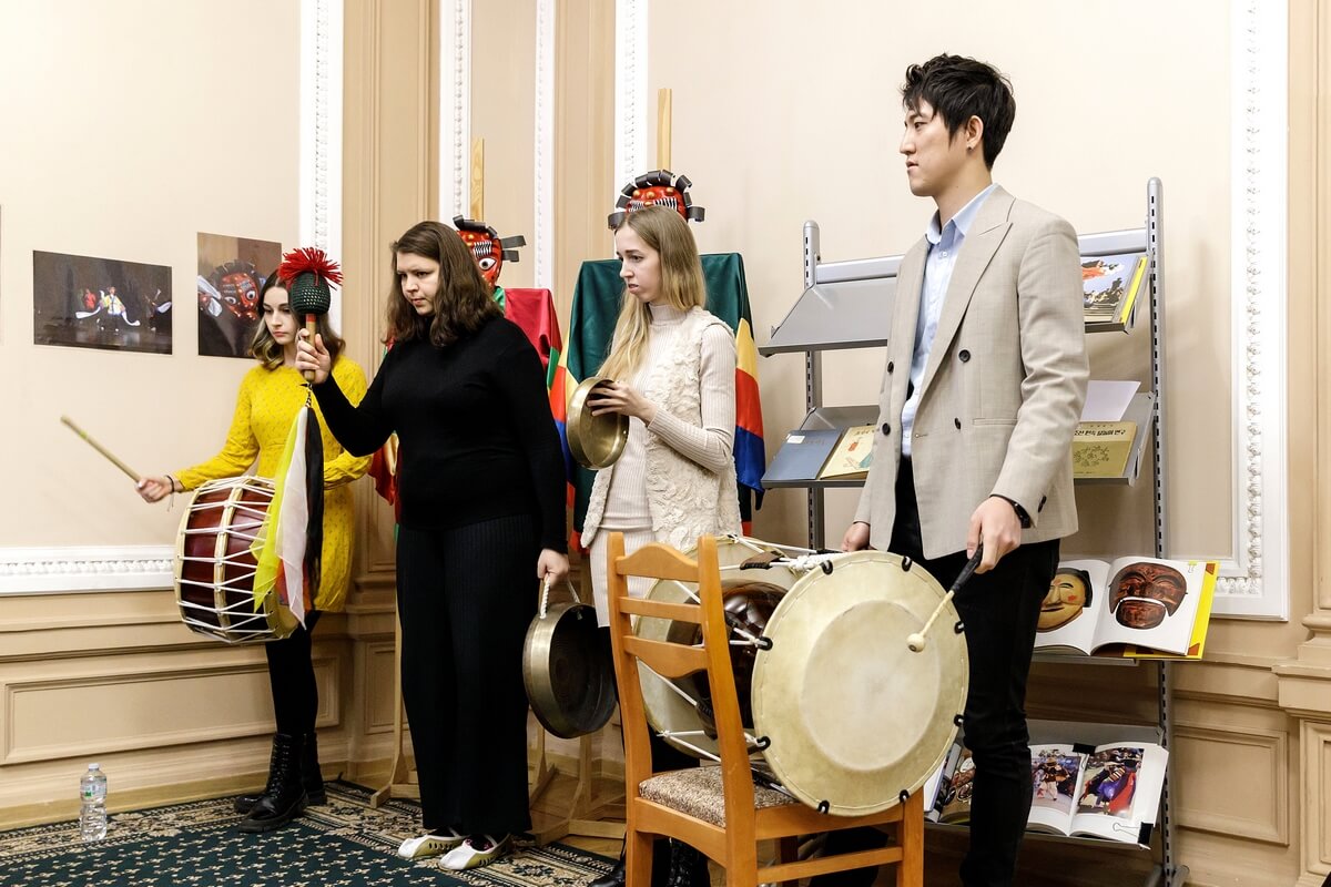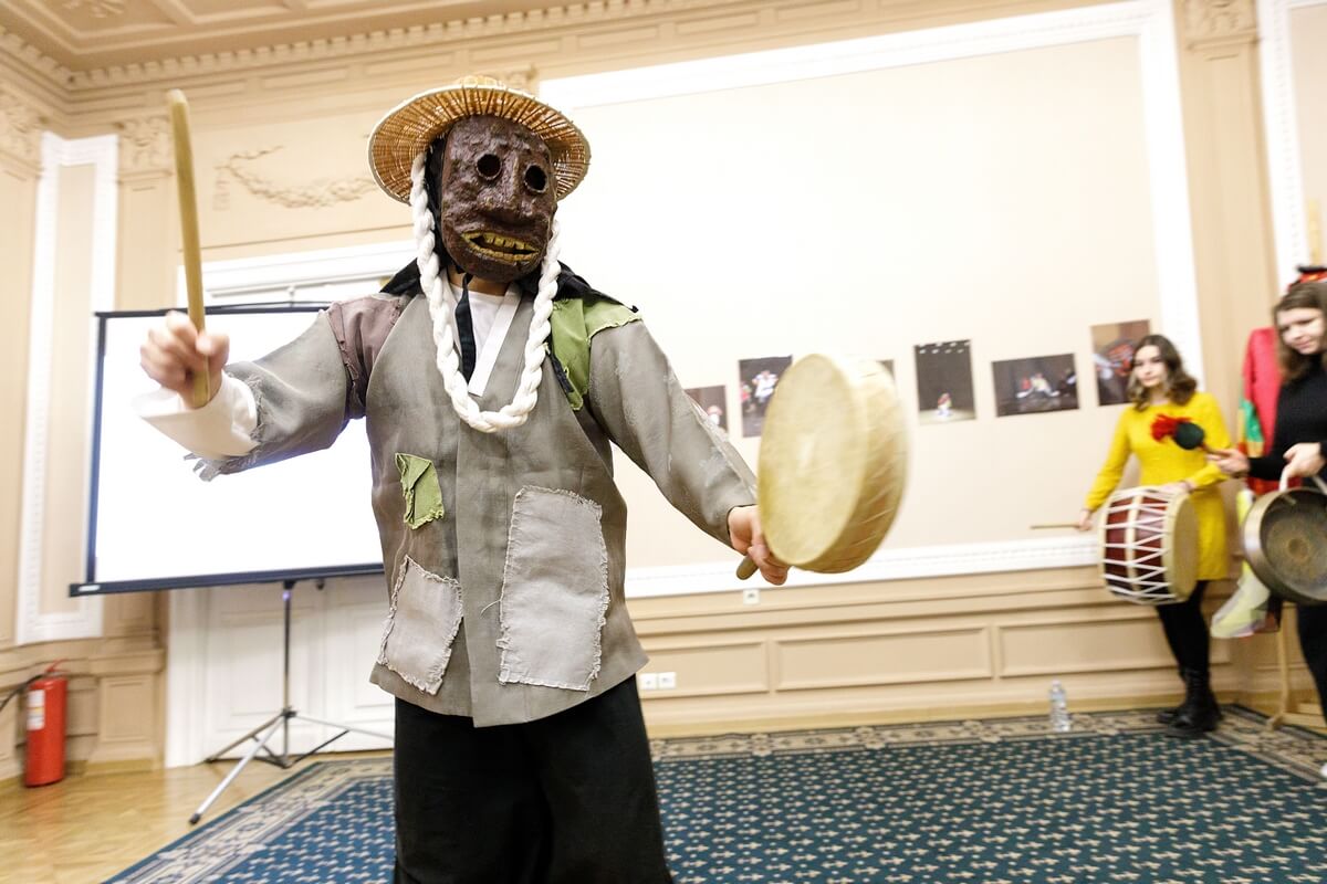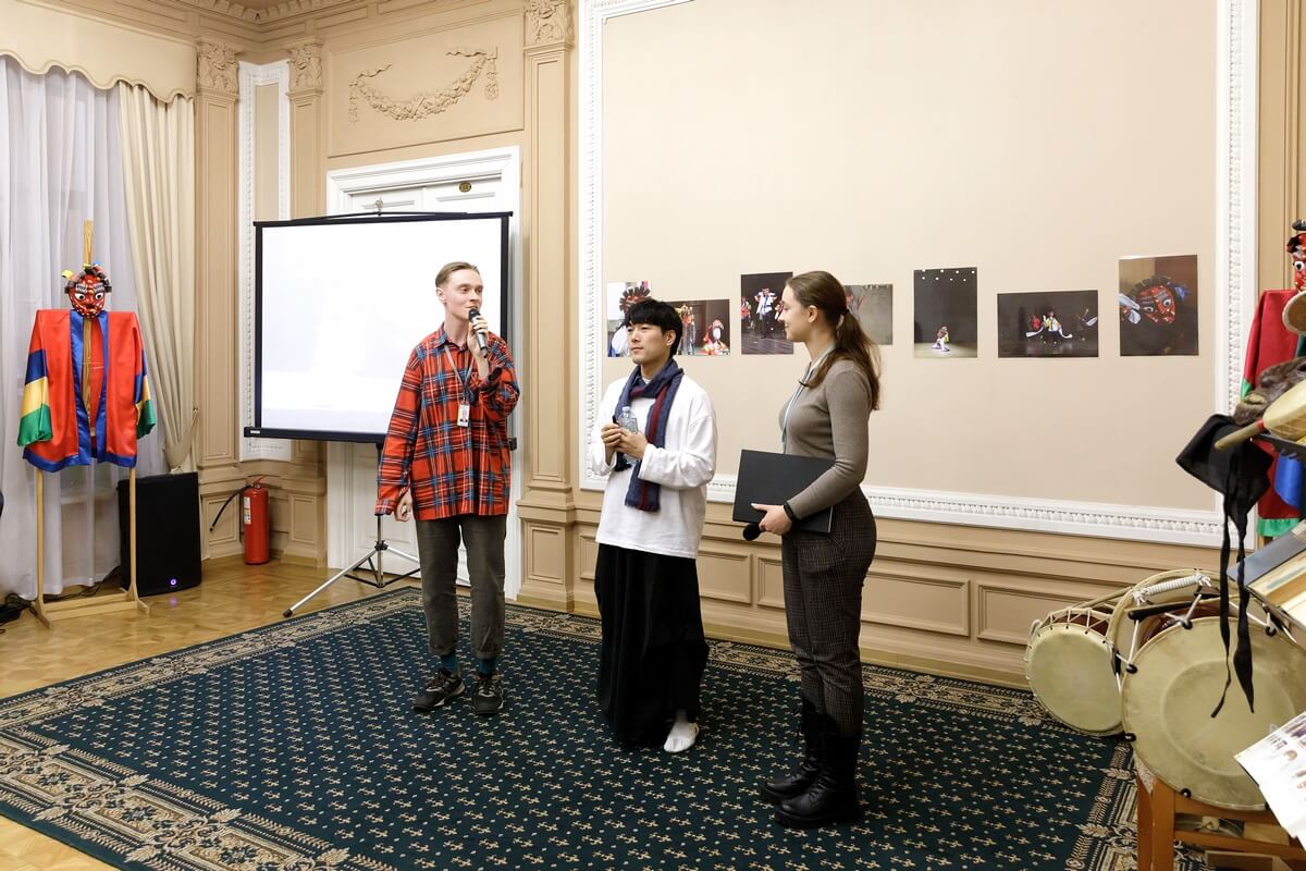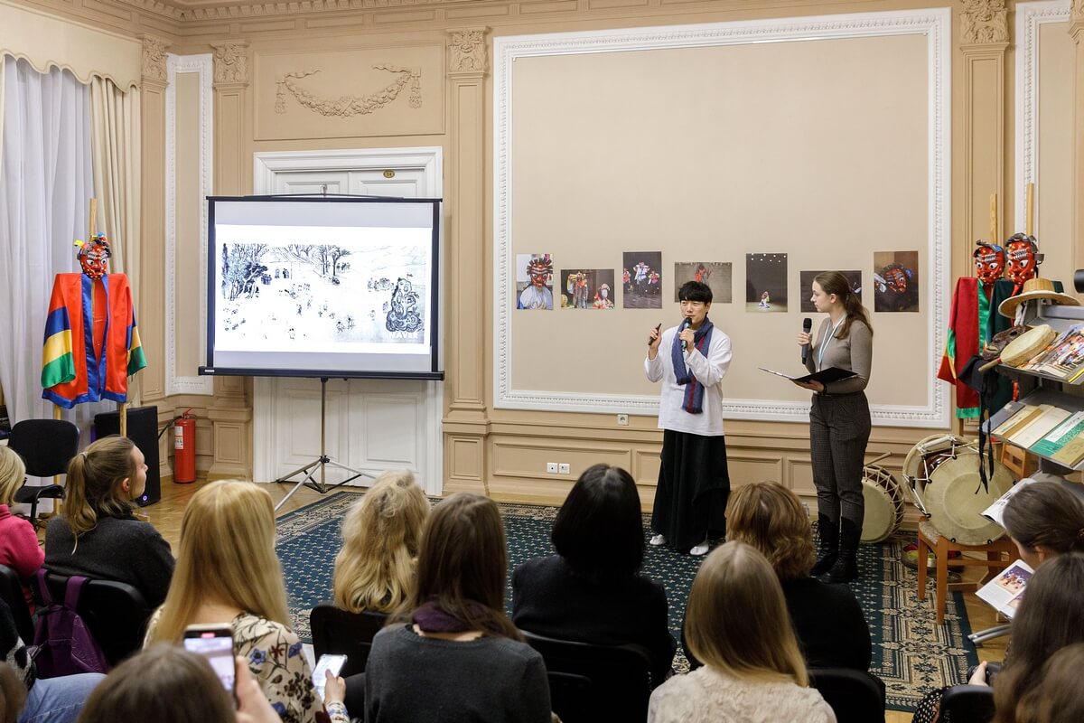 Лектор познакомил гостей с одним из видов танцев в масках — «Букчхон саджанореум», традиции которого в Корее передаются до настоящего времени.