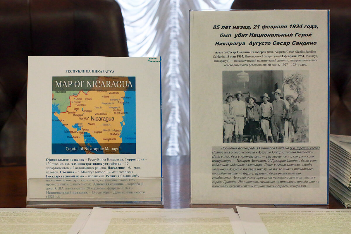 21 февраля в Российской государственной библиотеке прошёл круглый стол, посвящённый памяти борца за независимость Никарагуа Аугусто Сандино. Мероприятие было приурочено к 85-ой годовщине его трагической гибели.