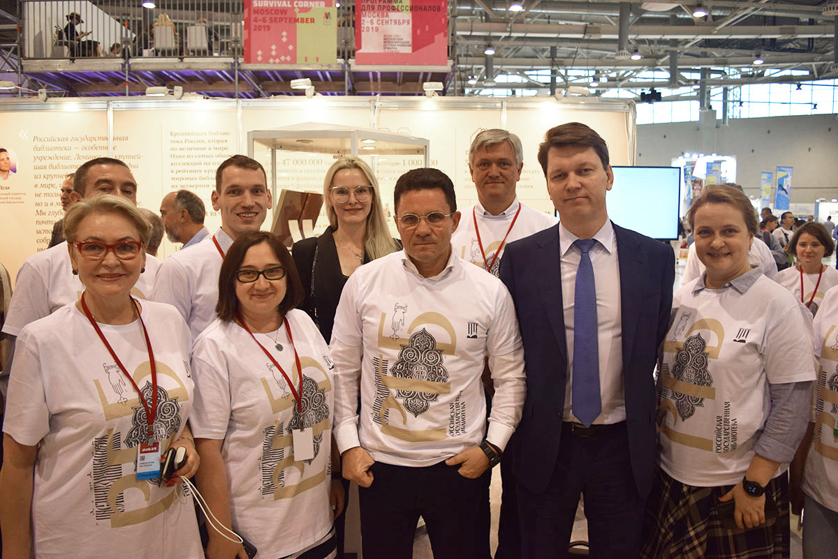 Площадка крупнейшей библиотеки России включала несколько зон: здесь можно было приобрести продукцию издательства «Пашков дом» и сувениры на память, познакомиться с раритетами Музея книги РГБ, получить консультацию библиотечных специалистов и узнать о новых возможностях и моделях взаимодействия издателей, авторов и библиотек.
