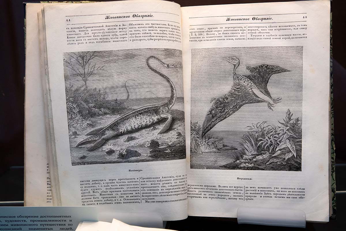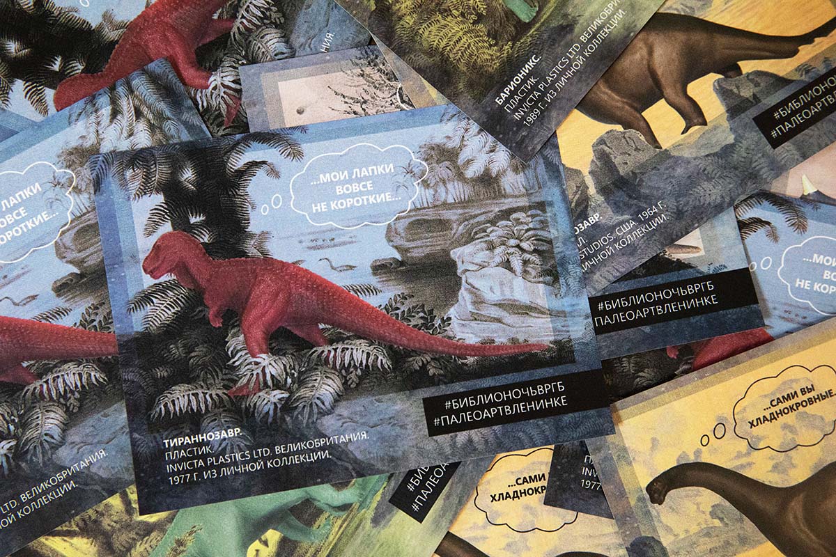 Неизвестное не только пугает, но и вызывает большой интерес. В Голубом выставочном зале прошла выставка «Палеоарт. Магия допотопных»: по изданиям XIX — начала ХХ века можно было проследить, как зарождалось увлечение динозаврами, распространённое и сейчас. Помогла в этом увлекательная лекция о том, как менялось представление о динозаврах в нашем культурном ландшафте, прочитанная Андреем Паламарчуком — главным редактором «National Geographic Россия».