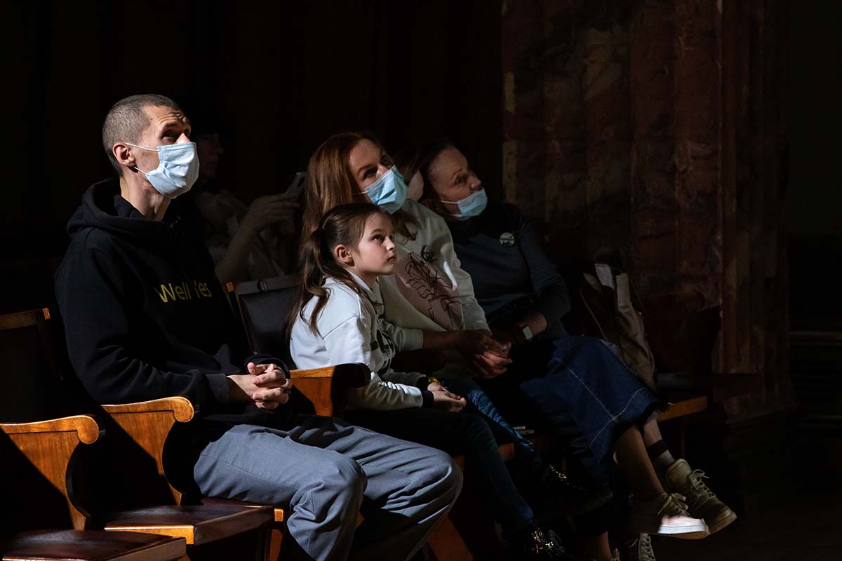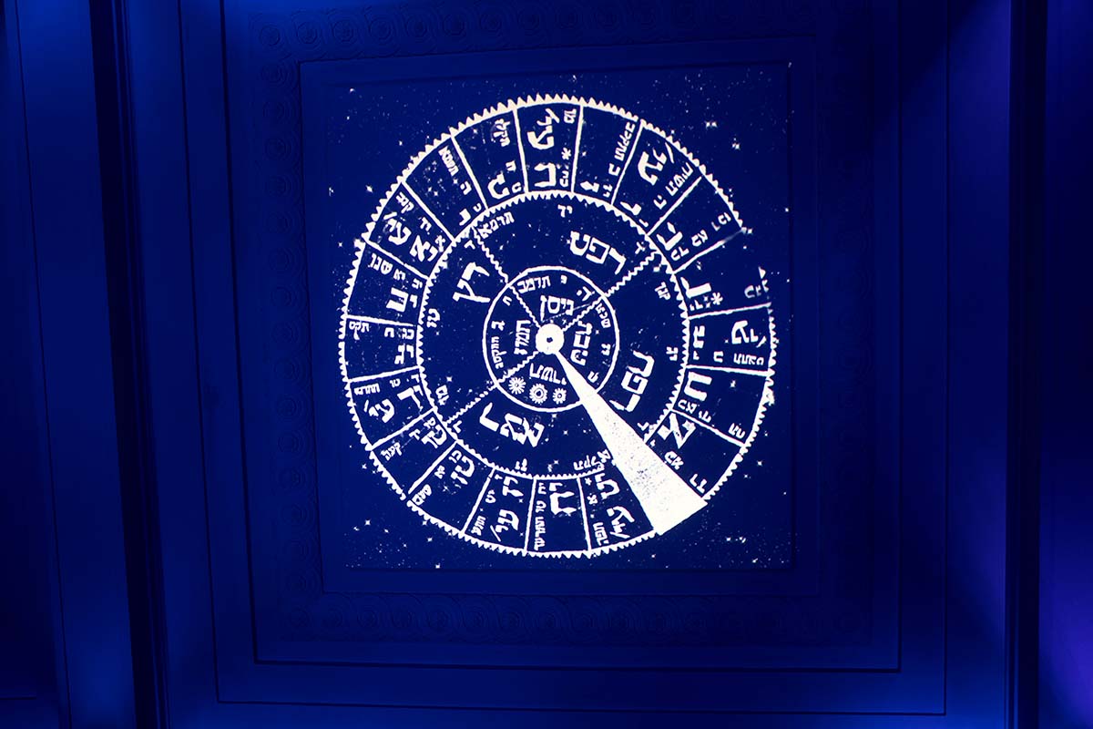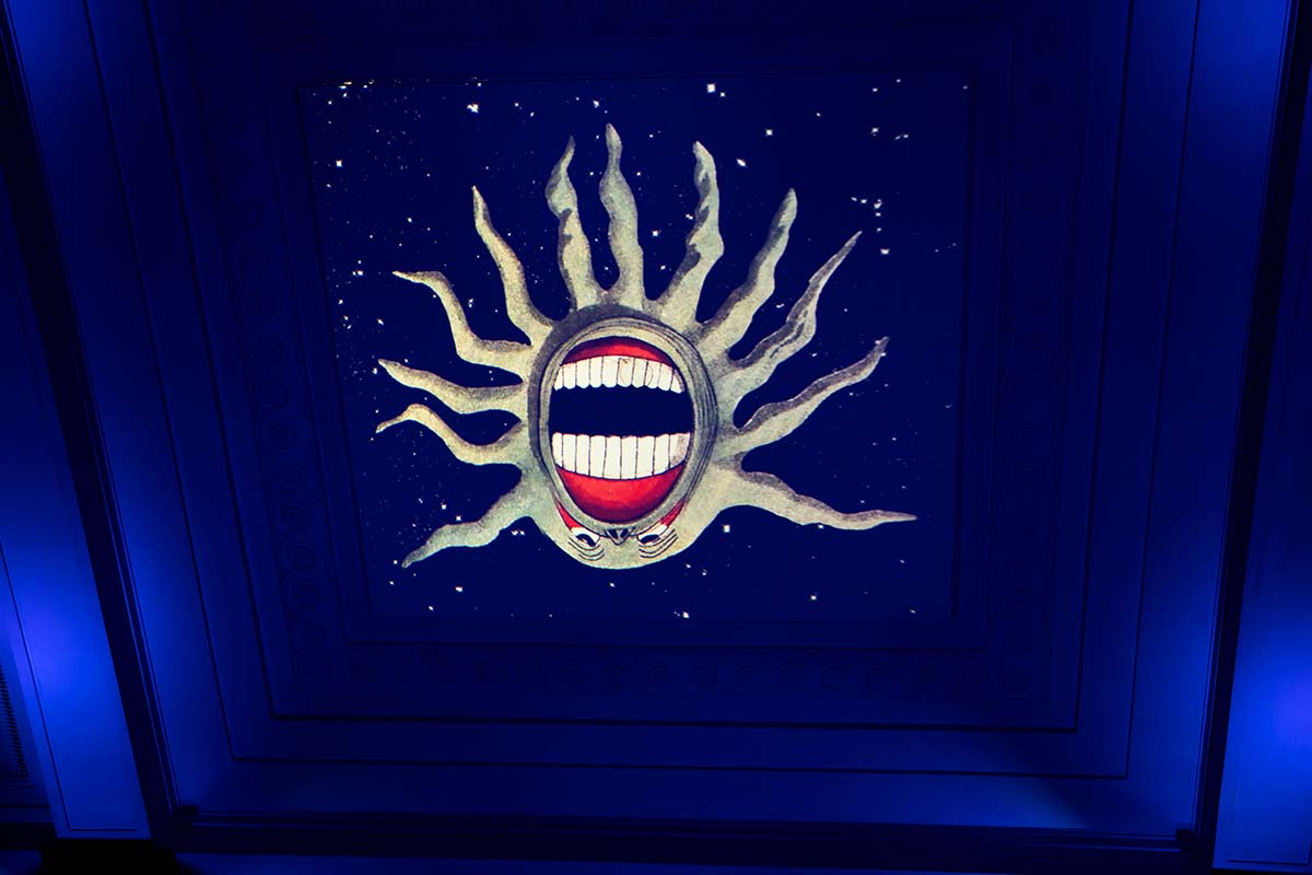Потолок над головами гостей превратился в видеорассказ о том, что происходило в небе днём и ночью, если верить источникам последних пяти веков.
