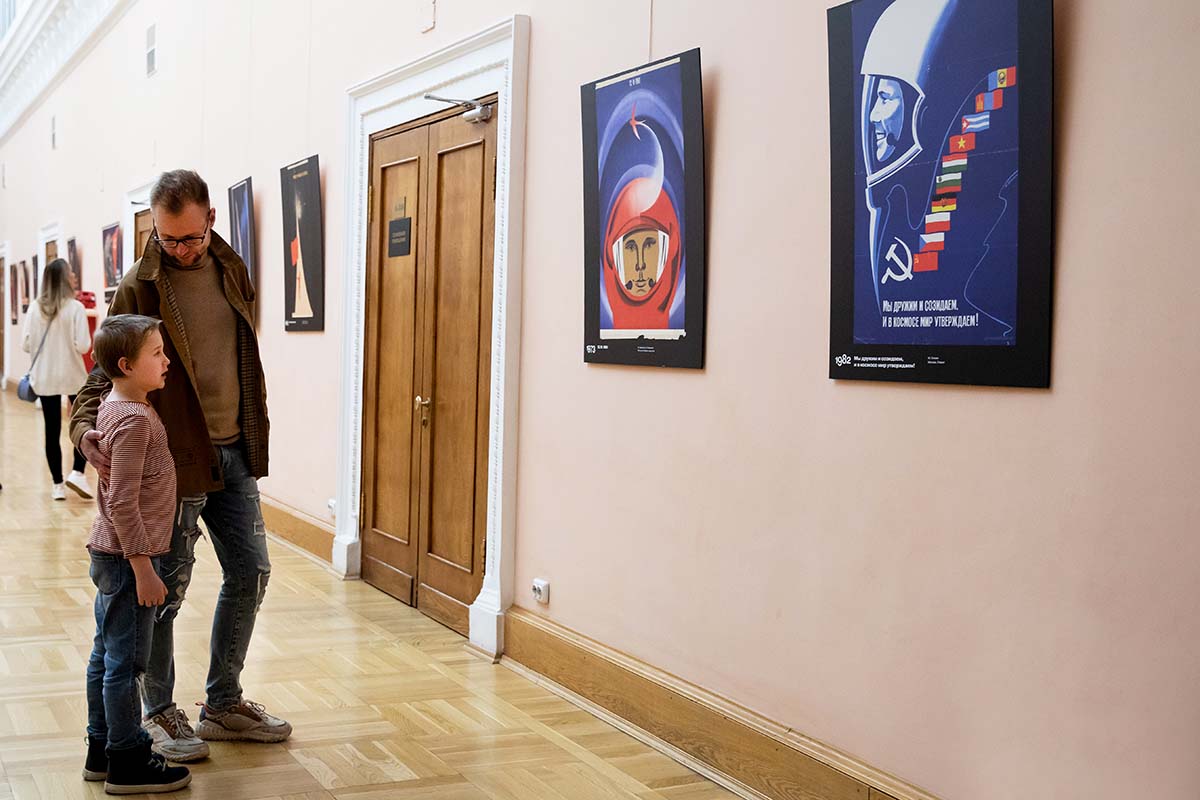 В Розовом зале открылась баннерная выставка «Мы первые!», посвящённая образу героя-космонавта в советском плакате. В экспозиции — копии более 30 плакатов из фонда отдела изоизданий РГБ.