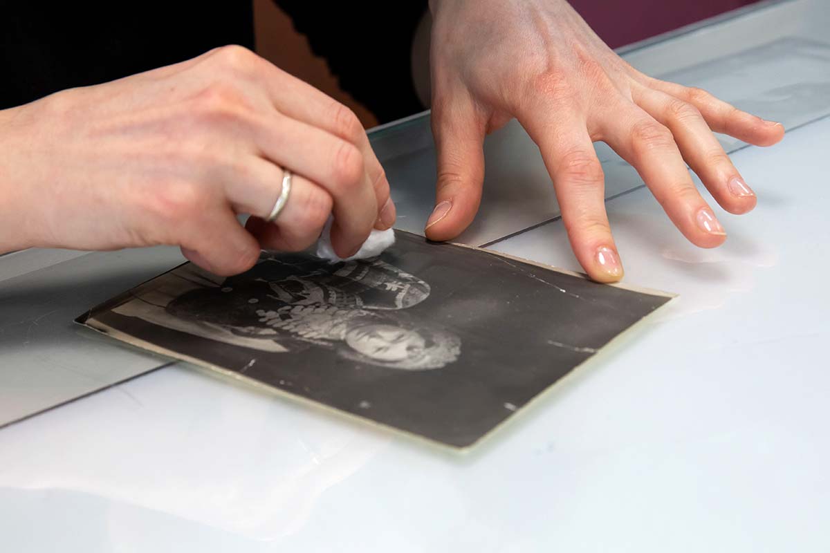 «Ранняя фотография, как и любой памятник, нуждается в заботе и защите. Предварительно проводятся изыскательные работы, нужно понять, с какими повреждениями мы имеем дело: механическими, химическими или биологическими. Следует выяснить, чем „болеет“ бумага. От этого зависит дальнейшая работа с ней», — рассказывает Татьяна Васильевна Кравченко.