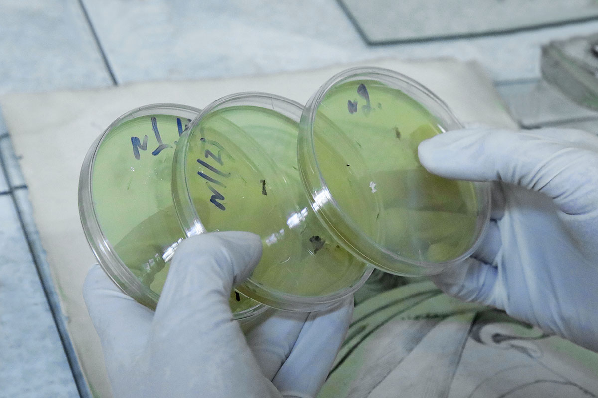 Ведущая покажет, как определить наличие или отсутствие микроскопических грибов на документах. Для этого в её распоряжении будут лампа Вуда и чашка Петри. Участники занятий научатся с ними обращаться и узнают, как проводить микробиологическое обследование документов до реставрации и делать посевы с миксомицетов с целью определения их жизнеспособности.