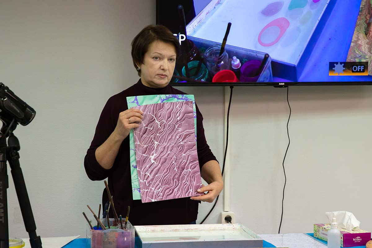 5 и 6 апреля состоятся мастер-классы сертифицированного мастера по производству мраморной бумаги Елены Викторовны Белозёровой «Мраморирование бумаги в вопросах и ответах» .