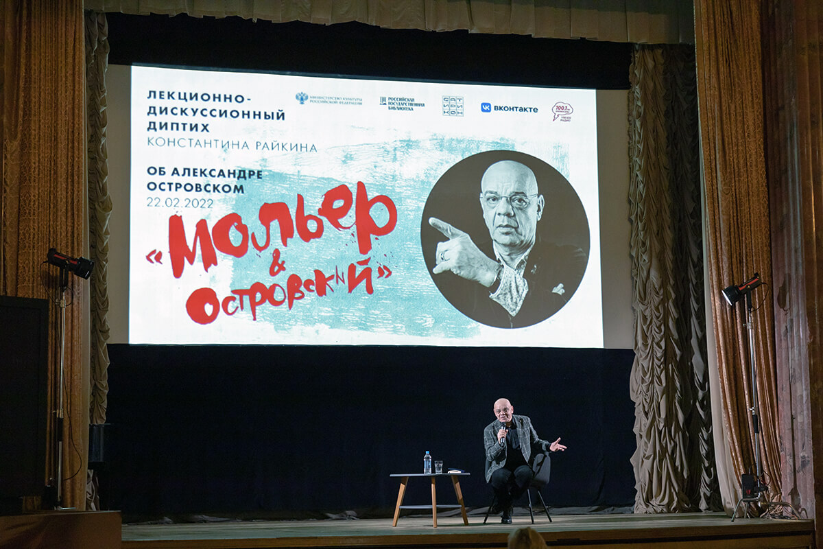 22 февраля в Российской государственной библиотеке прошла вторая встреча с Константином Райкиным, актёром театра и кино, режиссёром, художественным руководителем Российского государственного театра «Сатирикон». Темой обсуждения в рамках лекционного диптиха «Мольер & Островский» стала современная интерпретация пьес Островского в постановках театра.