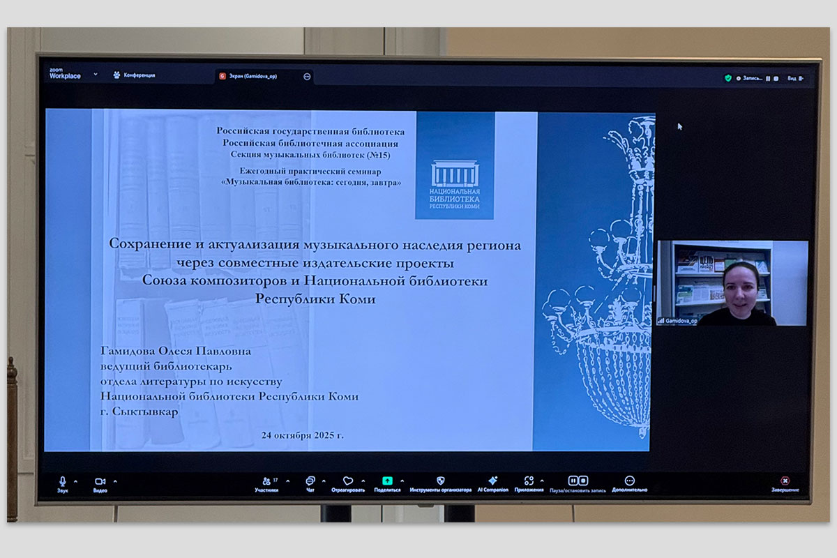 Важным направлением в работе отделов литературы по искусству региональных библиотек остается изучение творчества местных современных композиторов. Опыт подготовки и реализации издательского проекта рассмотрели в докладе «Сохранение и актуализация музыкального наследия региона через совместные издательские проекты Союза композиторов и Национальной библиотеки Республики Коми» (Олеся Гамидова, Сыктывкар).