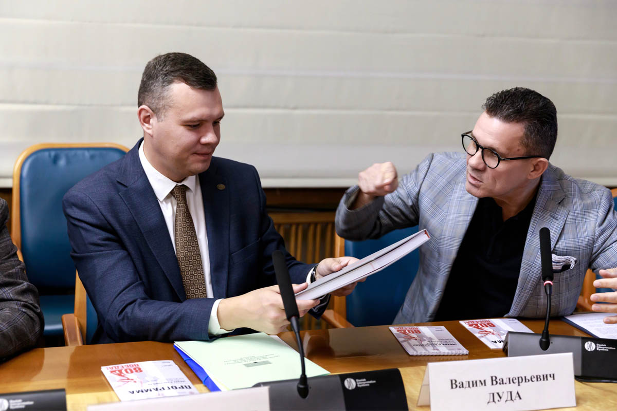 В своём приветствии генеральный директор РГБ, президент Российской библиотечной ассоциации, президент Библиотечной Ассамблеи Евразии Вадим Дуда подчеркнул значимость развития и углубления взаимодействия библиотек двух стран в научно-исследовательской деятельности: «Тема сегодняшнего мероприятия — 80-летие Великой Победы —важнейшая и для России, и для Беларуси. Российскую государственную библиотеку связывают тесные взаимоотношения с библиотеками Беларуси по разным направлениям библиотечной работы. Мы надеемся, что первое совместное мероприятие — круглый стол, посвящённый столь важной теме, будет способствовать углублению нашего сотрудничества в научной и издательской сфере».