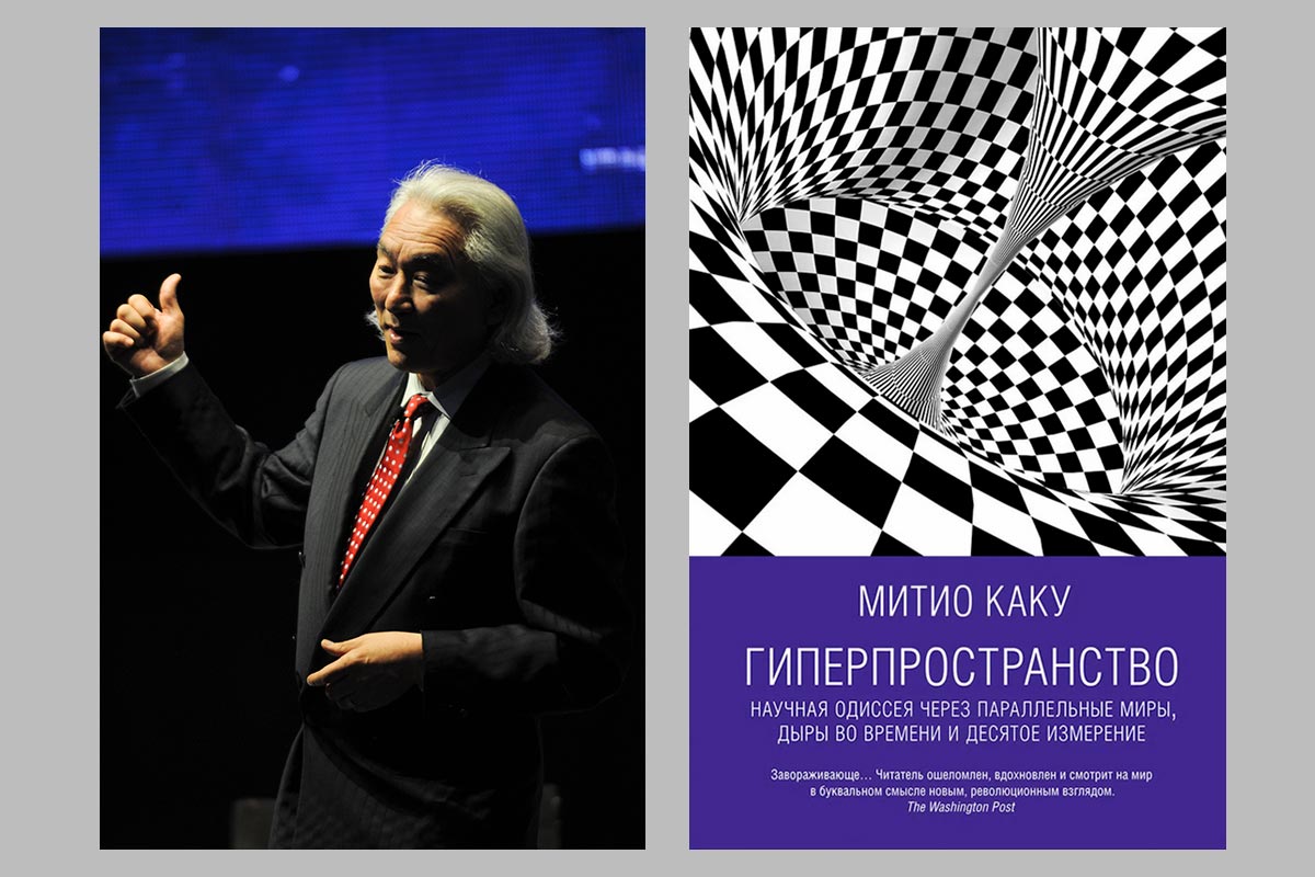 Митио Каку (фото: wikipedia.org) и обложка его книги «Гиперпространство: Научная одиссея через параллельные миры, дыры во времени и десятое измерение»