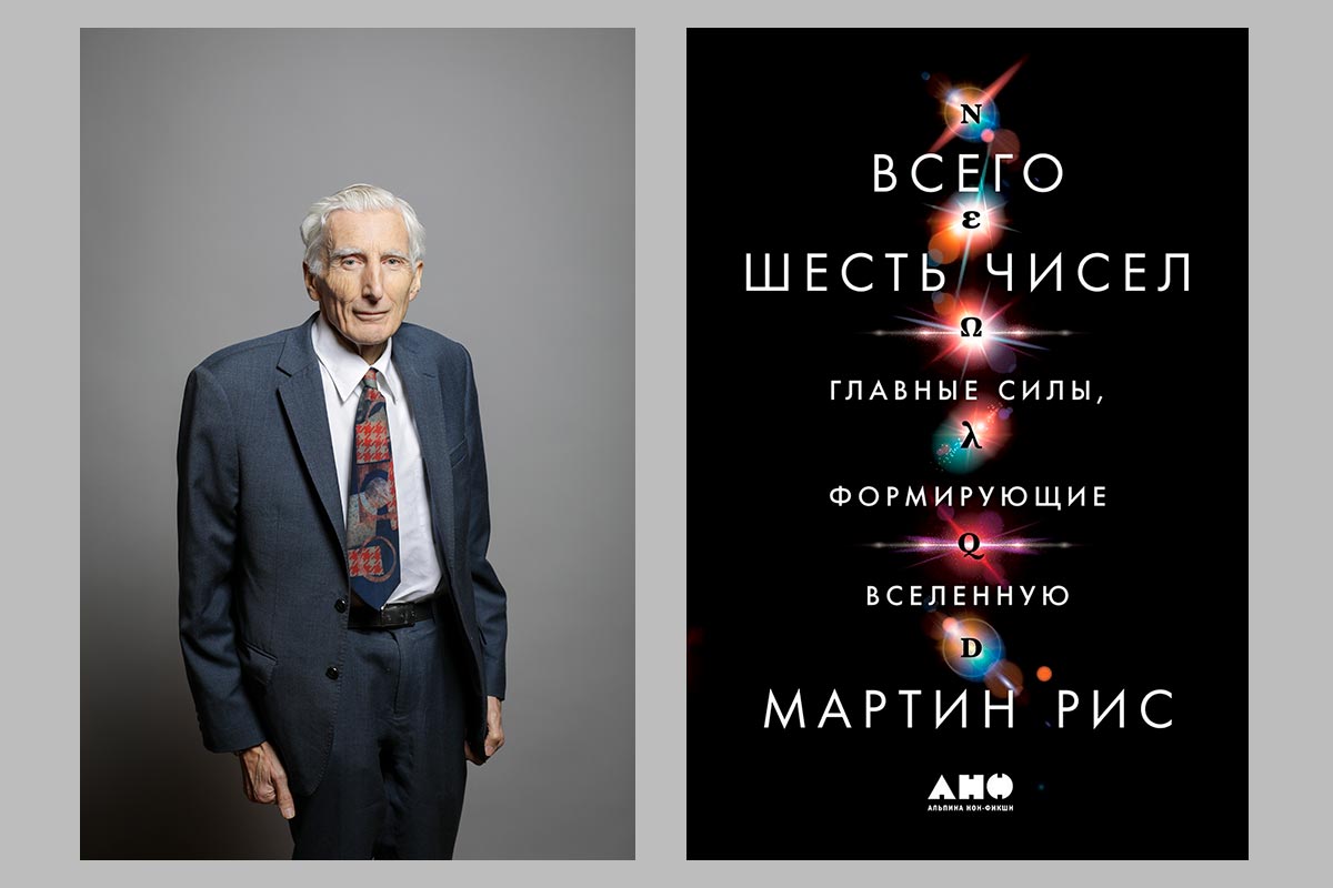 Мартин Рис (фото: wikipedia.org) и обложка его книги «Всего шесть чисел. Главные силы, формирующие Вселенную»