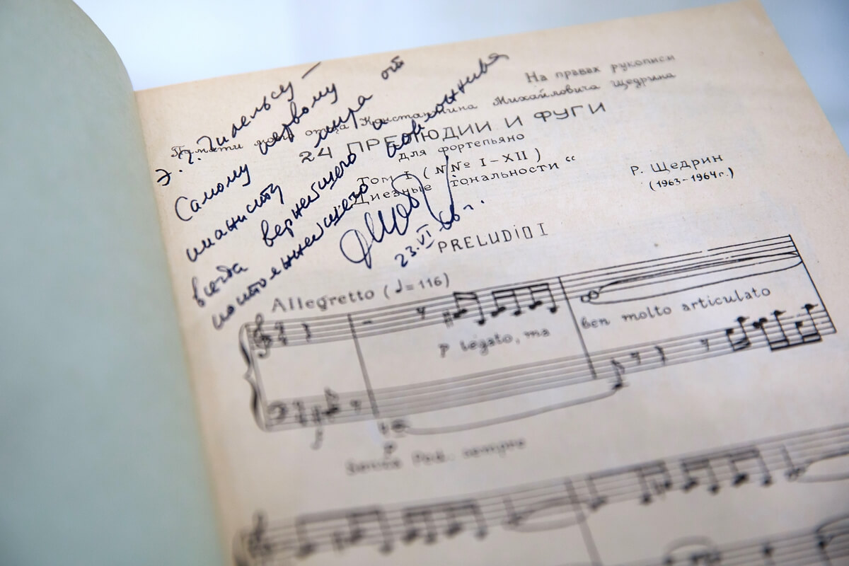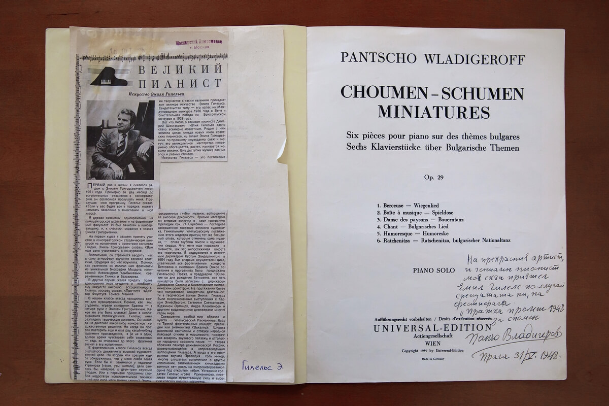 На выставке можно увидеть ноты и грампластинки, которые принадлежали Эмилю Гилельсу. На их страницах и конвертах сохранились автографы и дарственные надписи российских и зарубежных композиторов, дирижёров, исполнителей. Среди них — экземпляры, подписанные Родионом Щедриным, Самуилом Фейнбергом, Панчо Владигеровым, Арно Бабаджаняном, Дмитрием Кабалевским, Мирой