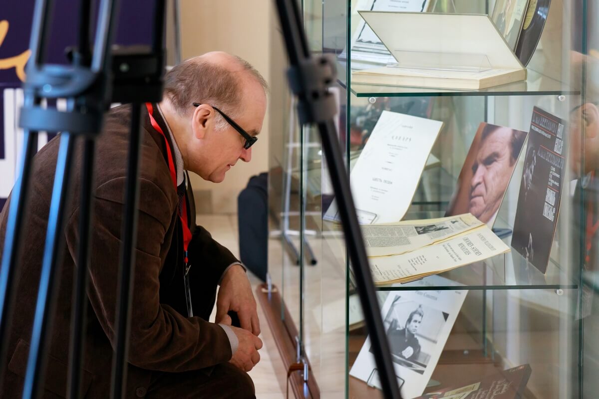 Знакомство с выставкой началось с музыкального вступления: в исполнении известного пианиста, профессора Московской государственной консерватории имени П. И. Чайковского Михаила Никешичева прозвучали «Две прелюдии» Александра Скрябина из репертуара Эмиля Гилельса.