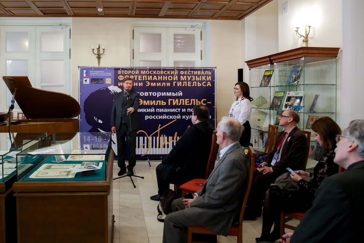 Главным гостем встречи стал Кирилл Гилельс, внук прославленного пианиста, который любезно предложил Ленинке к экспонированию редкие документы из семейного архива. Совместно с ним специалисты отдела нотных изданий и звукозаписей разработали концепцию выставки, а после открытия он провёл экскурсию по экспозиции.