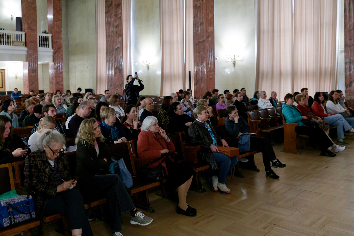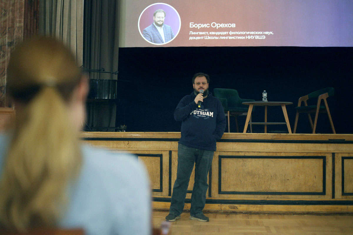 В завершение, с 22:00 до 23:00, посетители слушали лекцию лингвиста, кандидата филологических наук, доцента Школы лингвистики Национального исследовательского университета «Высшая школа экономики» Бориса Орехова о фильме «Гидроэлектросчастье».