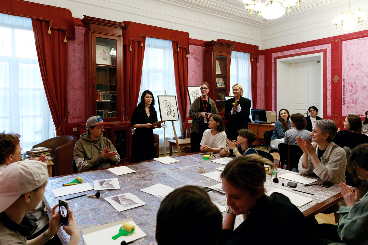 В завершении кураторской экскурсии посетителей ждал подарок от Армянского музея Москвы — стикеры с репродукциями некоторых из графических работ.