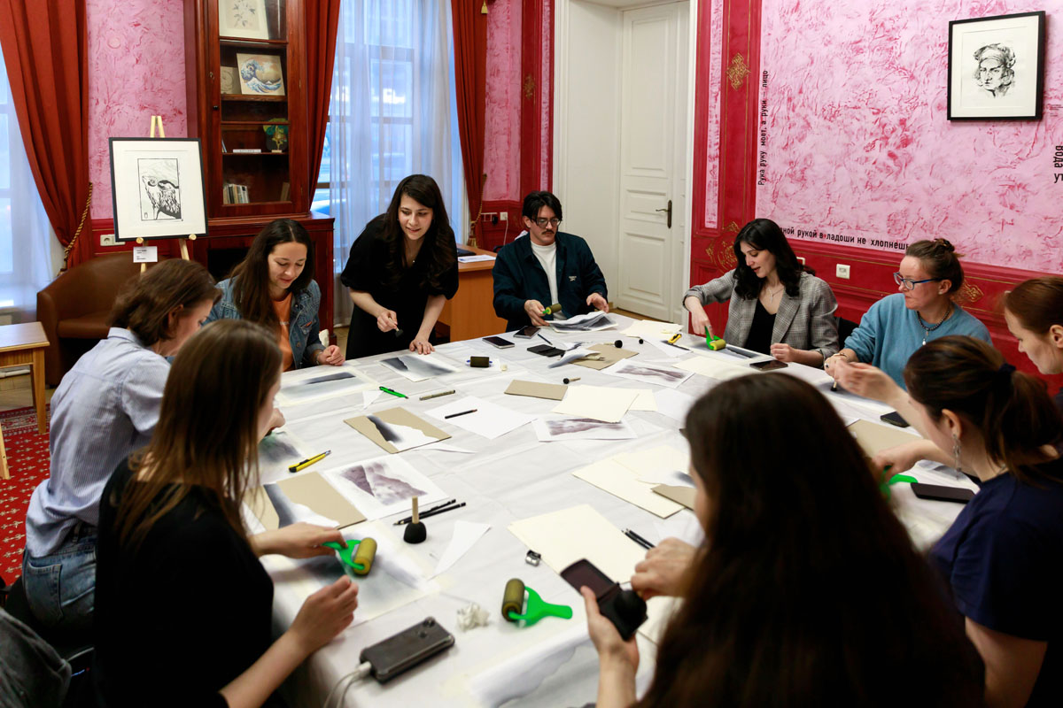 В завершение работы выставки «От линий к слову» в день акции «Ночь музеев» её можно было посетить до полуночи.