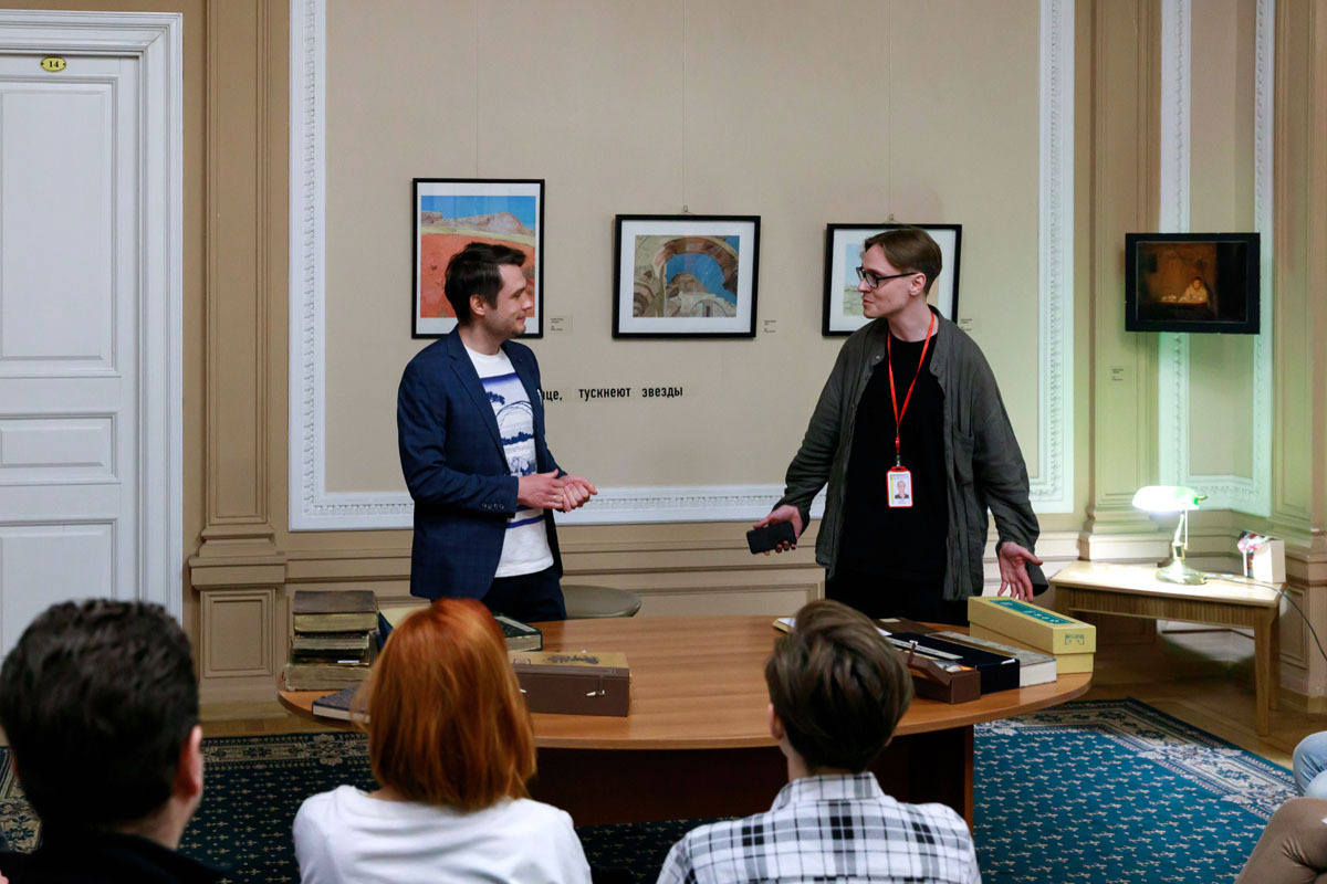 Экскурсию провёл Михаил Меланьин, заместитель заведующего ЦВЛ РГБ, куратор тематического раздела «Восточное собрание» проекта НЭБ «Книжные памятники».