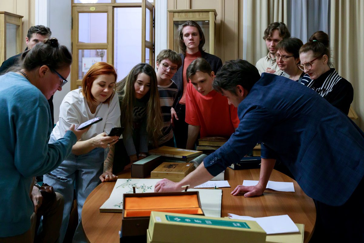 На специальной экскурсии «Восточное собрание: формы» слушатели узнали о формах книги, которые встречаются в печатной традиции стран Востока, познакомились с экспонатами раздела «Восточное собрание», который включает оцифрованные рукописи, первопечатные издания и редкие публикации авторов на языках народов стран Азии и Африки.