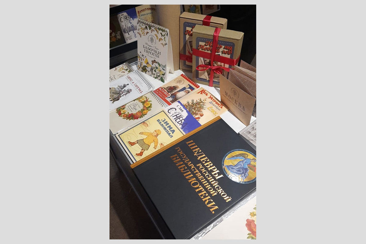 Специально к выставке была приготовлена новогодняя серия репринтов из фондов РГБ, которая познакомила посетителей с зимними рассказами XX века. На новых обложках скетчбуков и открыток представлены фрагменты плакатов новогодней и рождественской тематики из фондов отдела ИЗО.