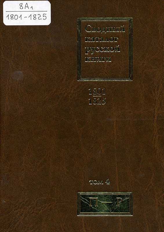Сводный каталог русской книги. 1801—1825. — Москва, 2019. — Т. 4 .