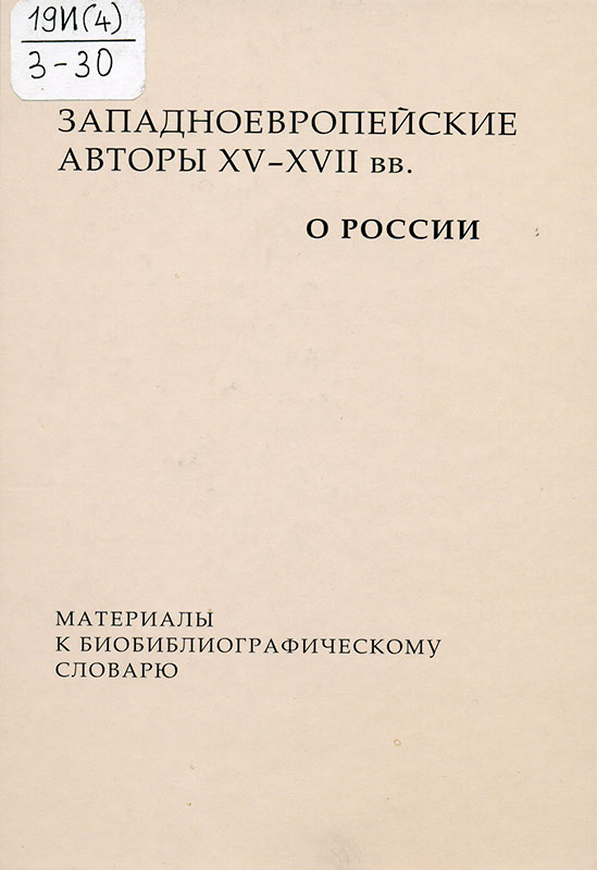 Западноевропейские авторы XV—XVII вв. о России: материалы к биобиблиографическому словарю. Москва, 2018 .