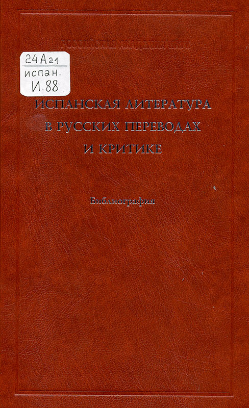 Испанская литература в русских переводах и критике: библиография. Санкт-Петербург , 2019 .
