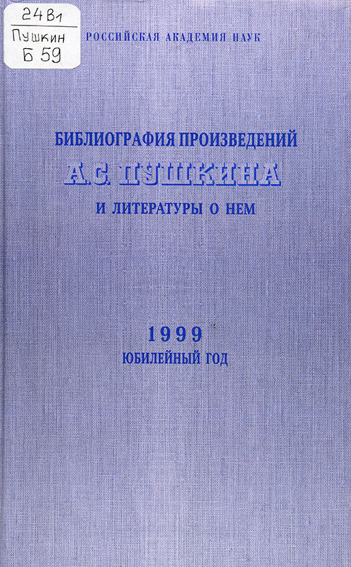 Библиография произведений А. С. Пушкина и литературы о нем. 1999 юбилейный год: приложение к «Временнику Пушкинской комиссии». Санкт-Петербург , 2019