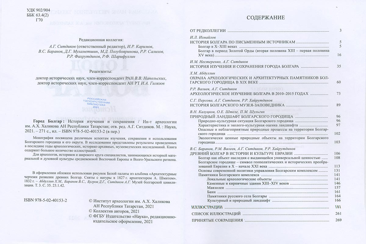 Город Болгар: история изучения и сохранения. Москва, 2021.