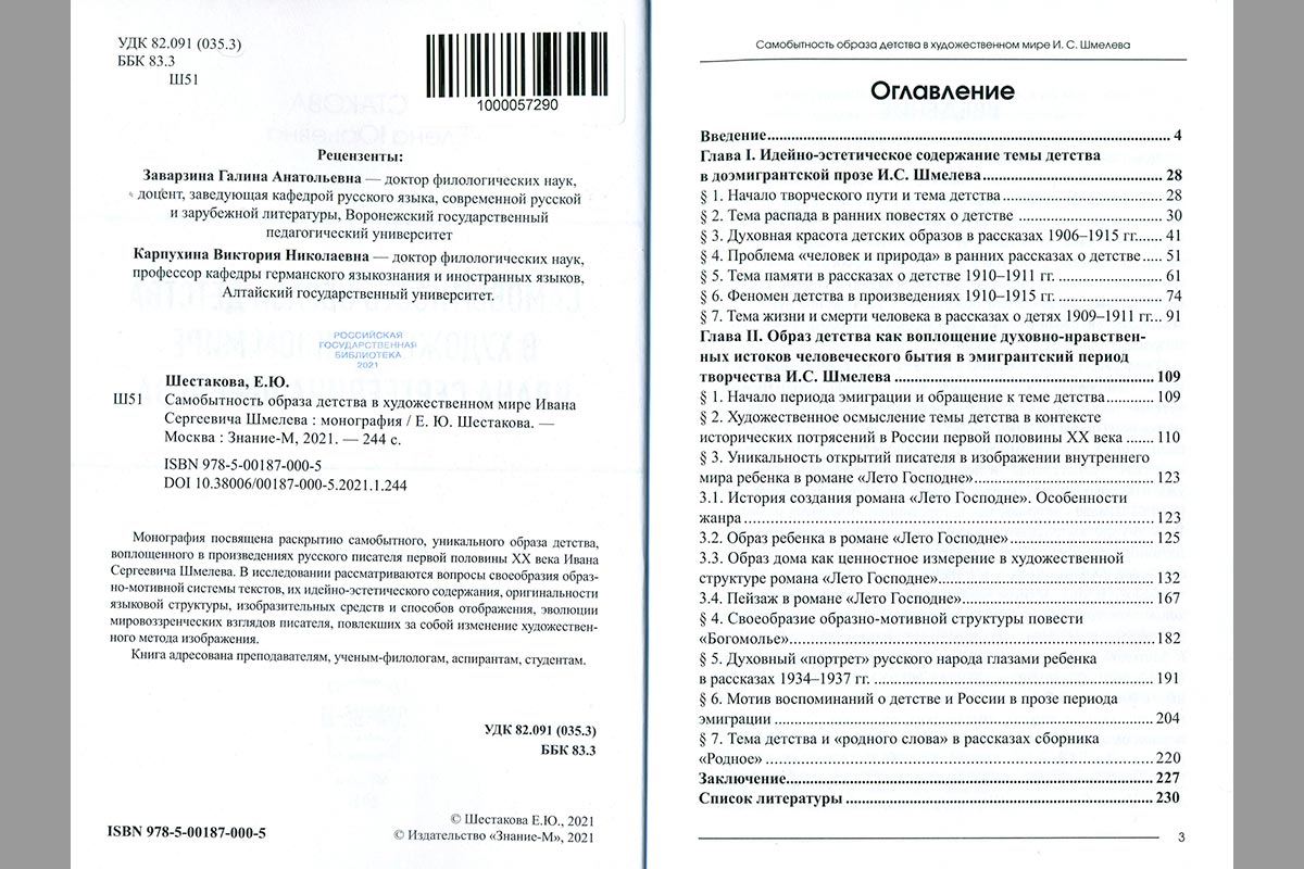 Шестакова, Елена Юрьевна. Самобытность образа детства в художественном мире Ивана Сергеевича Шмелева. Москва, 2021.