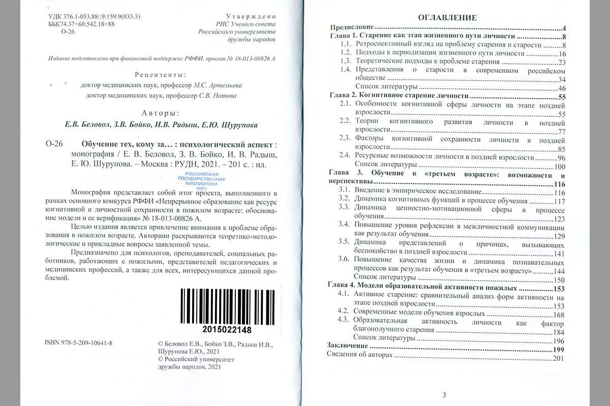 Обучение тех, кому за…: психологический аспект. Москва, 2021.