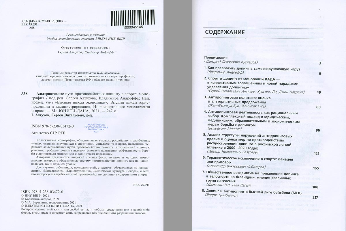 Альтернативные пути противодействия допингу в спорте: коллективная монография. Москва, 2021.