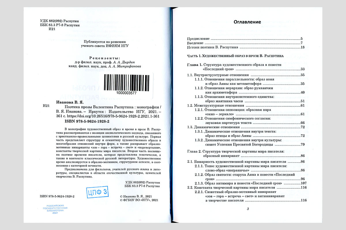 Иванова, Валентина Яковлевна. Поэтика прозы Валентина Распутина. Иркутск, 2021.