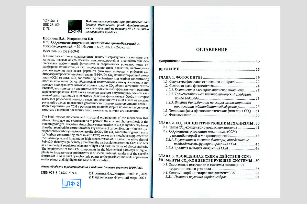Пронина, Н. А. CO2-концентрирующие механизмы цианобактерий и микроводорослей. Москва, 2021.