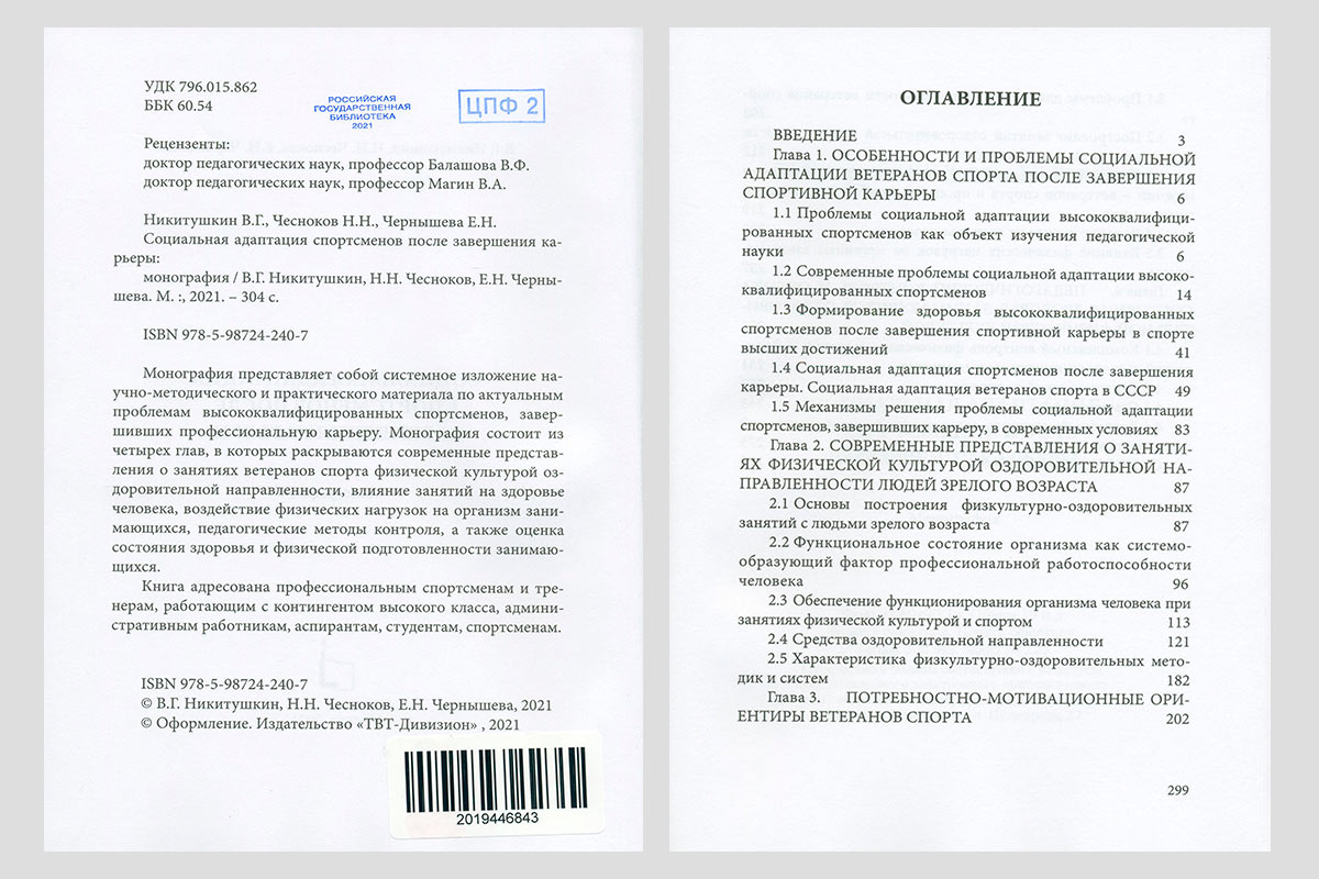 Никитушкин, Виктор Григорьевич. Социальная адаптация спортсменов после завершения карьеры. Москва, 2021.