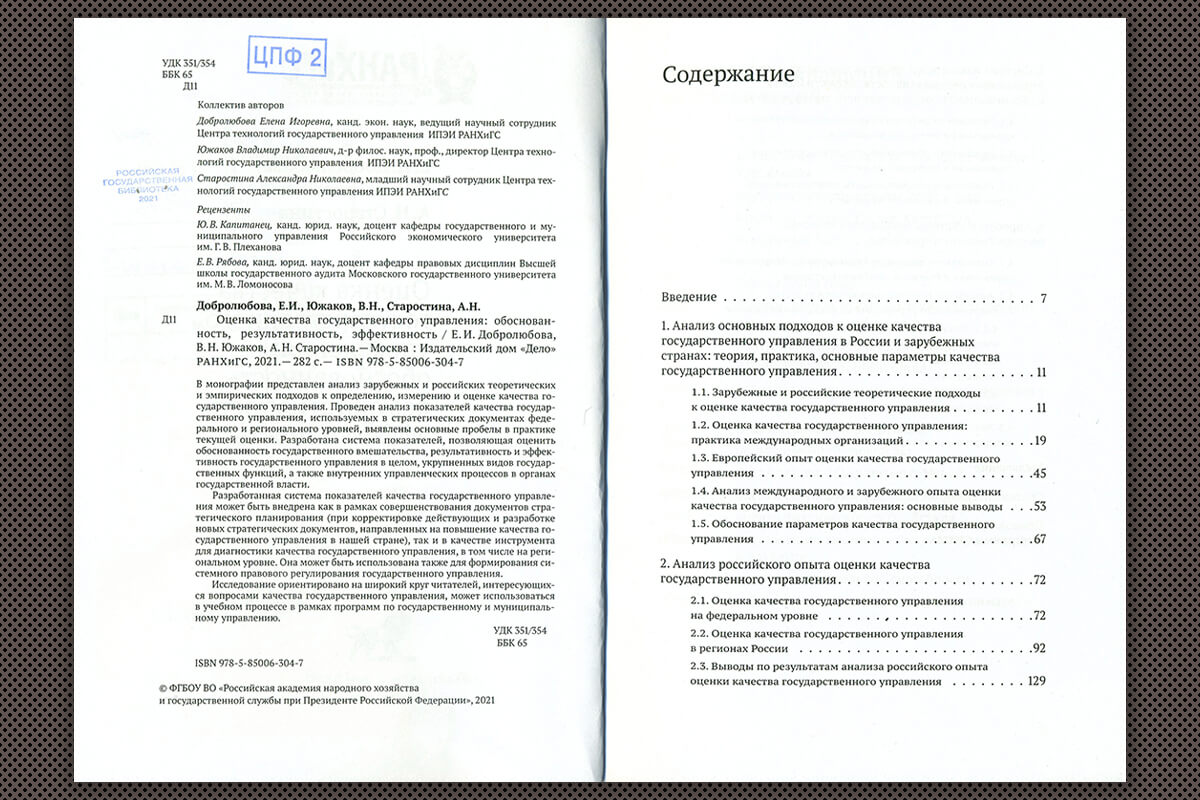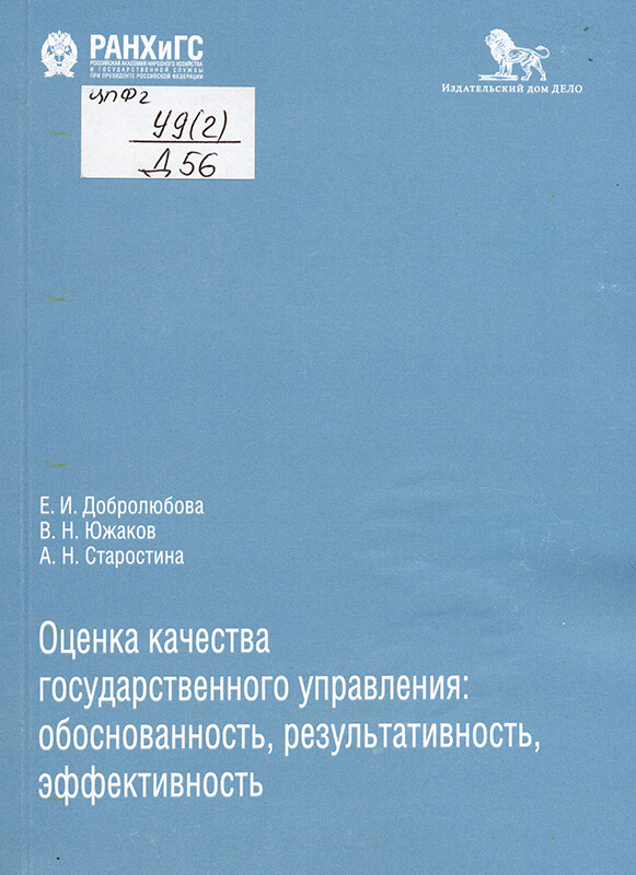 Добролюбова, Елена Игоревна. Оценка качества государственного управления: обоснованность, результативность, эффективность. Москва, 2021