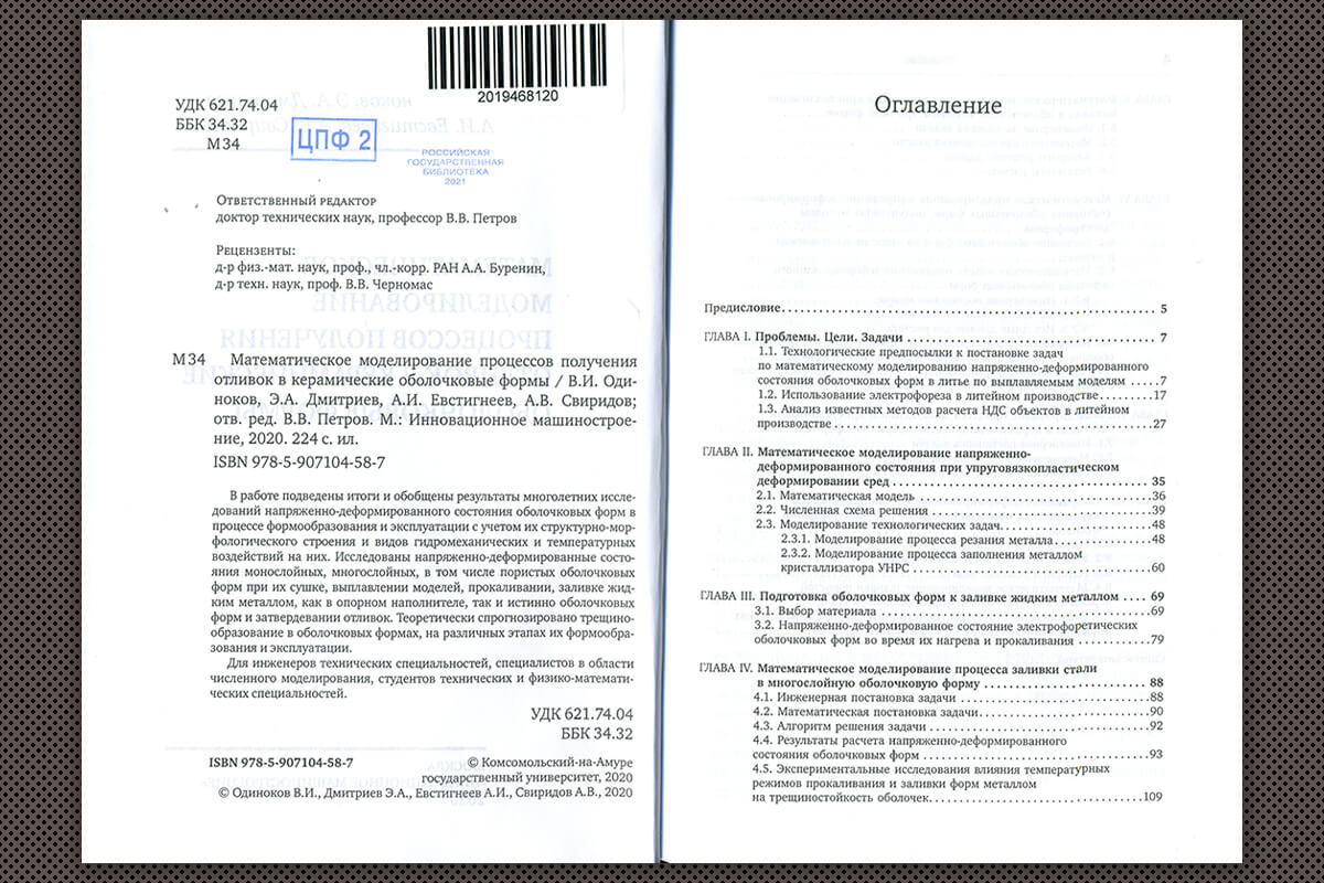 Математическое моделирование процессов получения отливок в керамические оболочковые формы. 2020