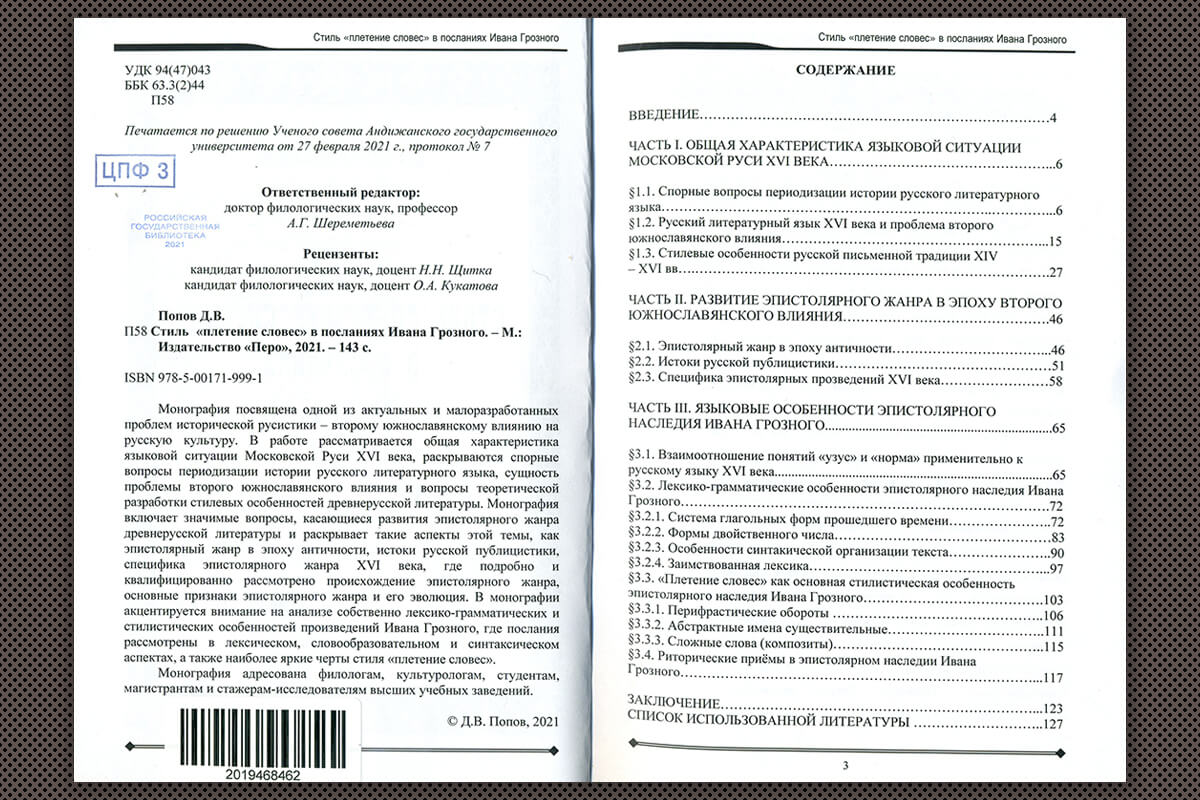 Попов, Дмитрий Владимирович. Стиль «плетение словес» в посланиях Ивана Грозного. Москва, 2021
