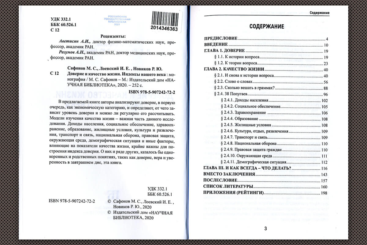 Сафонов, Максим Сергеевич. Доверие и качество жизни. Индексы нашего времени. Москва, 2020