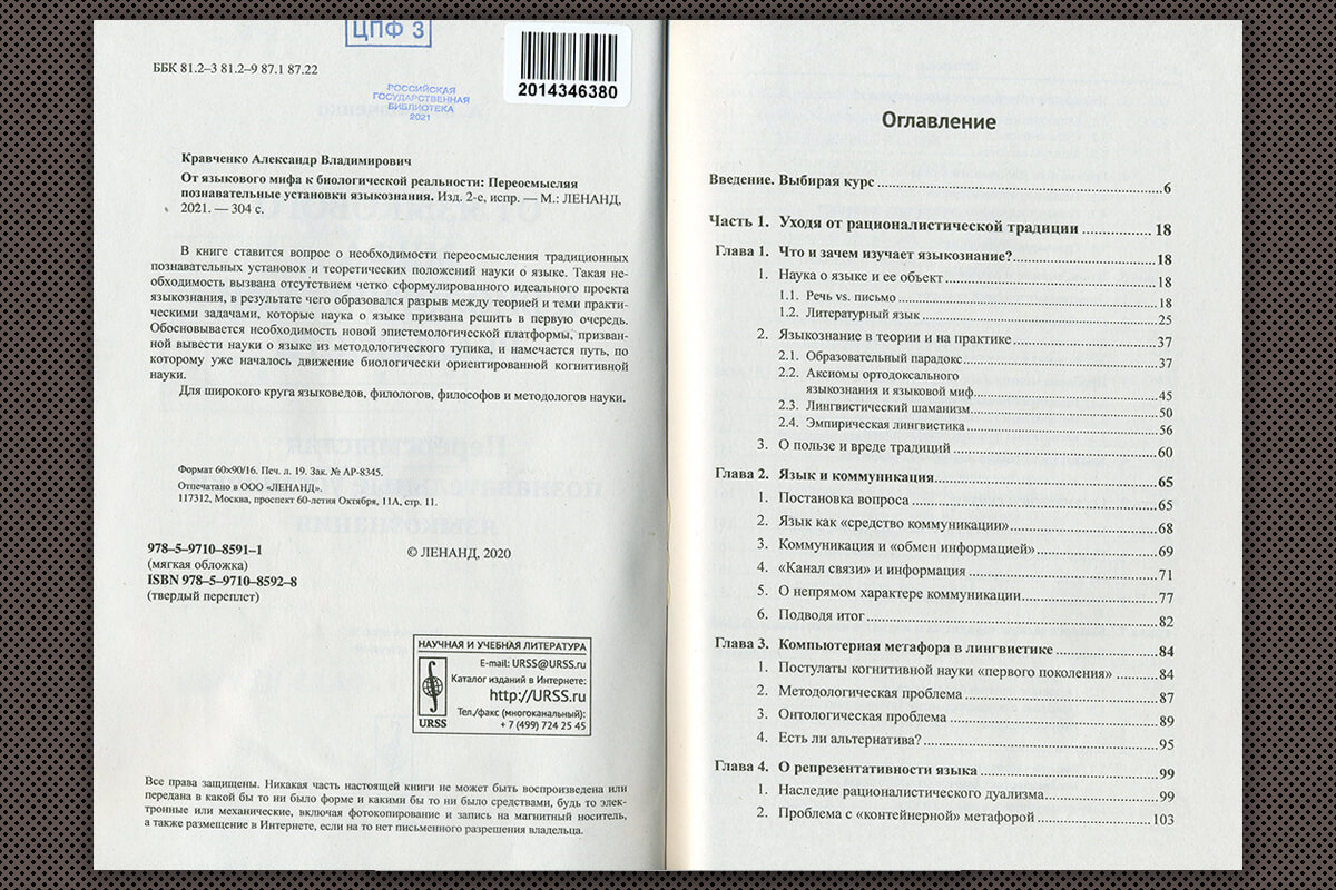 Кравченко, Александр Владимирович. От языкового мифа к биологической реальности: переосмысляя познавательные установки языкознания. Москва, 2020